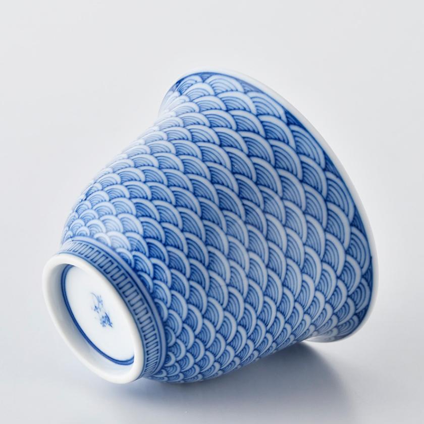 私たちの得意とする繊細な筆使いを活かして青海波を絵付しており、青海波は広い海がもたらす恩恵、無限に広がる波の紋様に未来へと続く幸せなどの意味があり、人々の平安な暮らしへの願いが込められた図柄です。