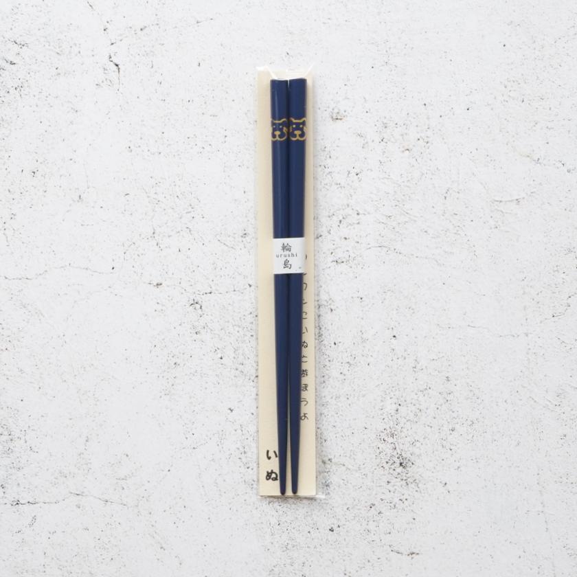 【輪島うるし箸 】橋本幸作漆器店 干支 こども箸 いぬ 藍 (1膳, 名入れ可)