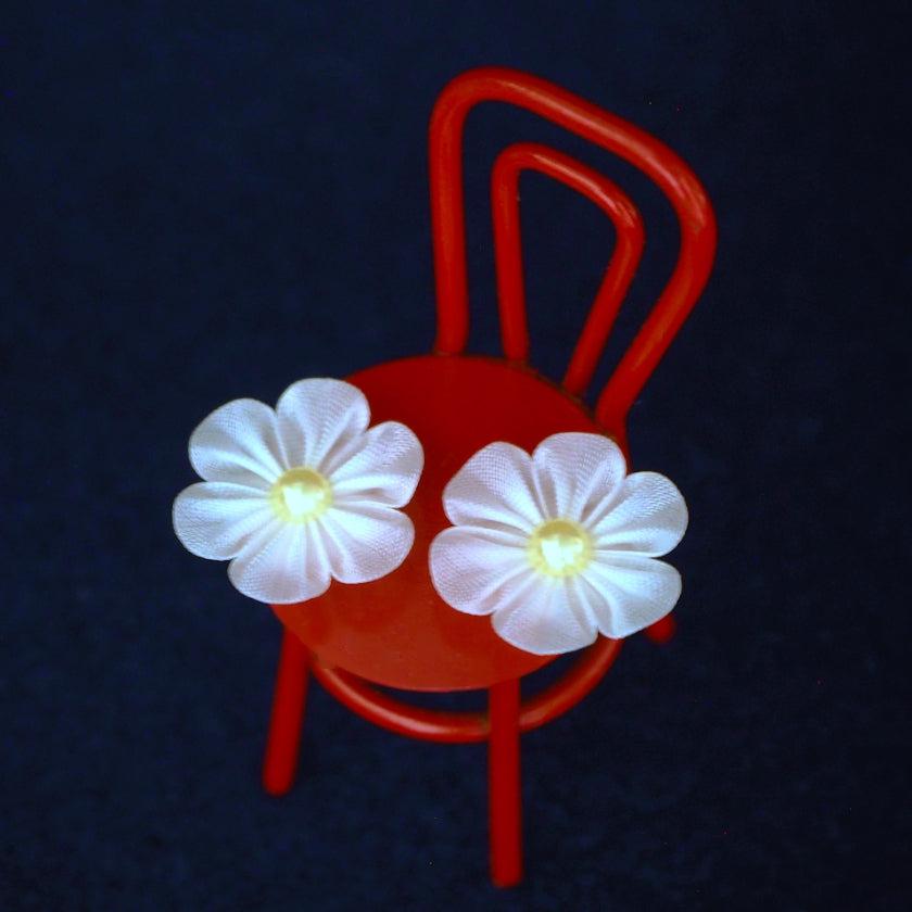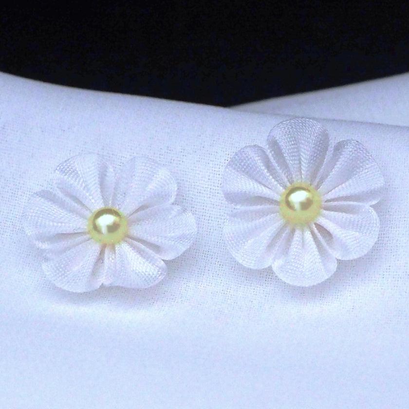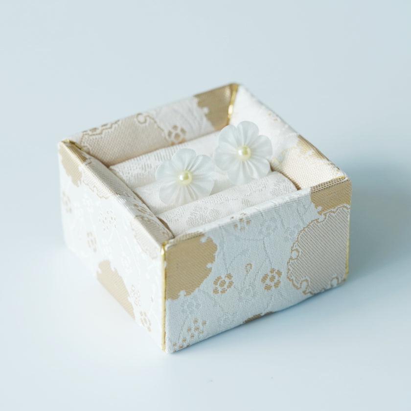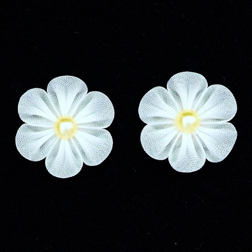 伝統工芸「つまみ細工」を、独自の道具や技法で発展させた布花のピアスです。