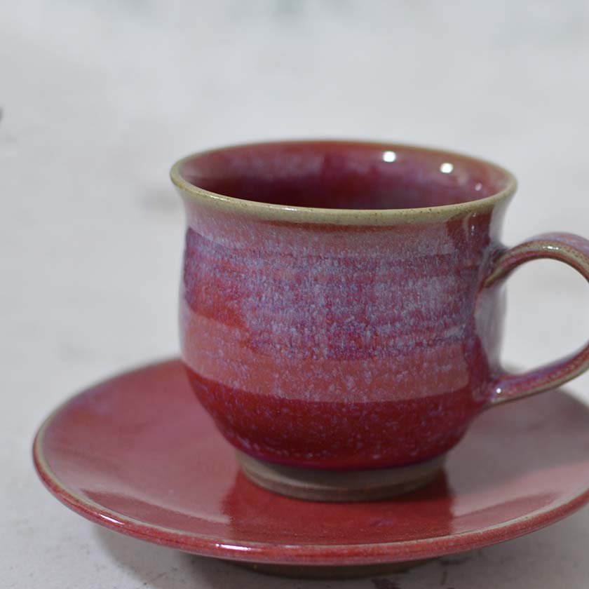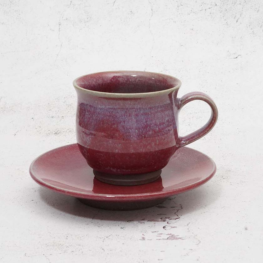 辰砂の独特な赤色が美しいカップ&ソーサーです。