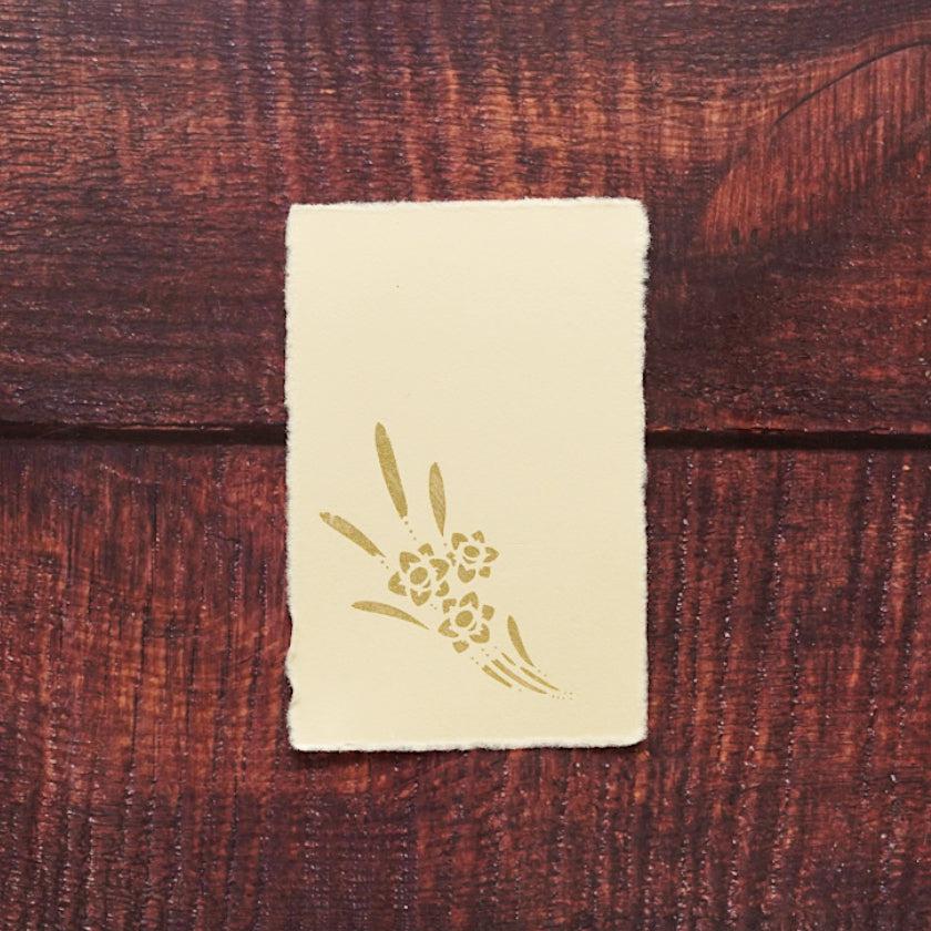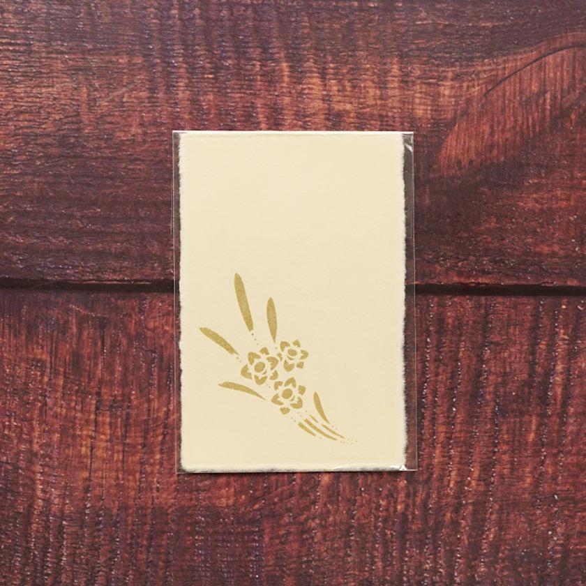 水仙は凛とした佇まいで知性美を表し、上品な印象なので、御挨拶状やお礼状にも、ふさわしい柄とされています。