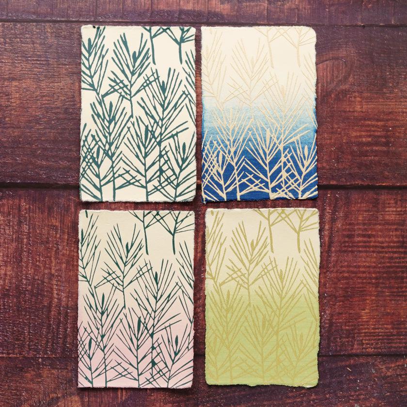 こちらは襖の技法と柄を取り入れた、色違い絵はがき4枚セットです。