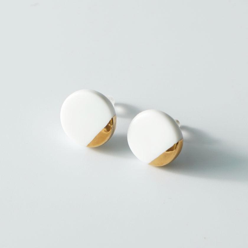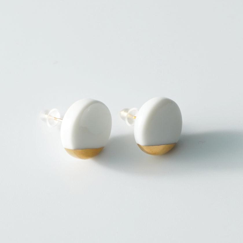 丸い純白の磁土に華やかなゴールドをあしらったイヤリング。