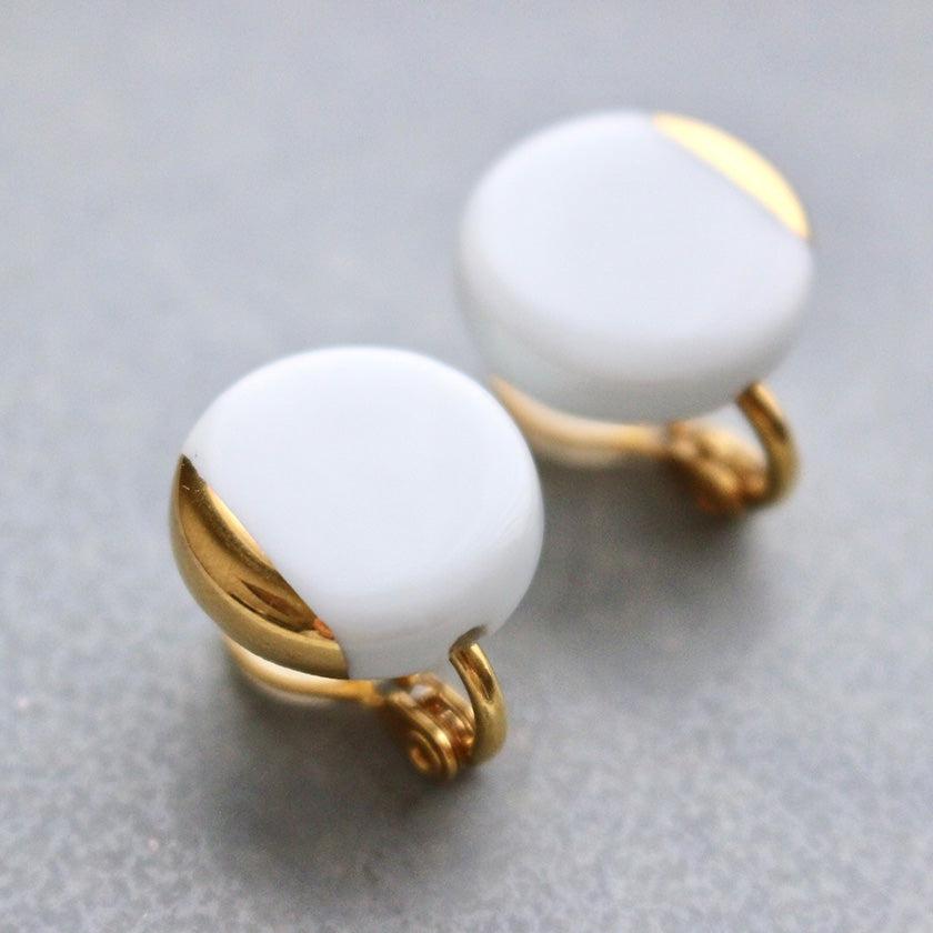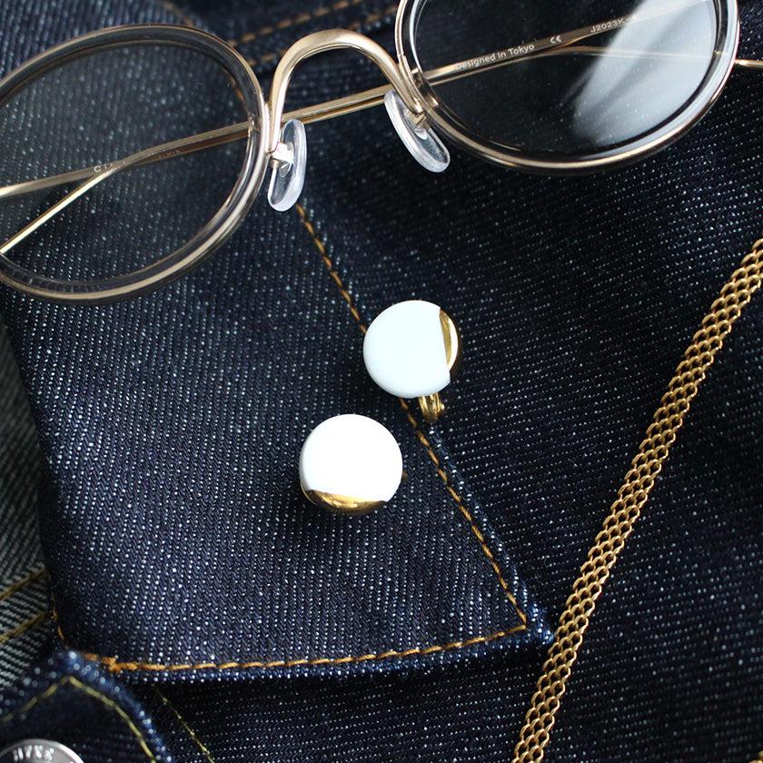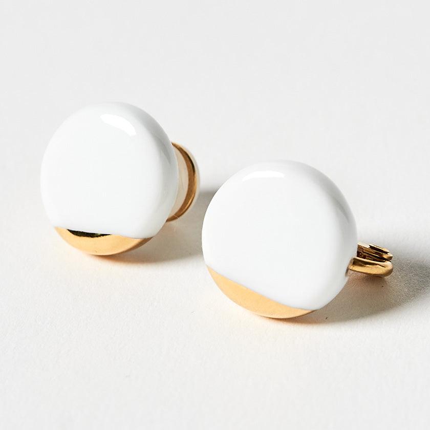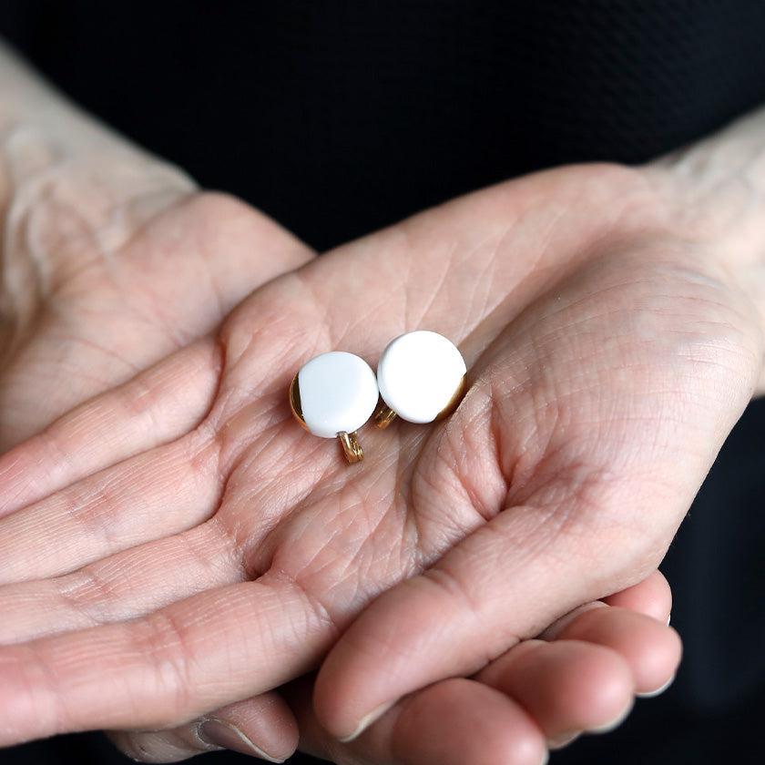 丸い純白の磁土に華やかなゴールドをあしらったイヤリング。