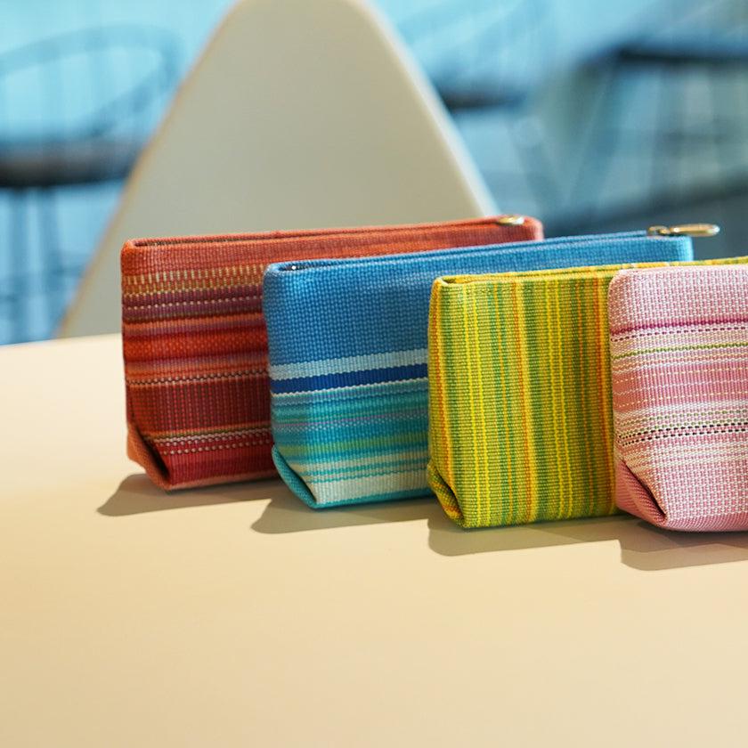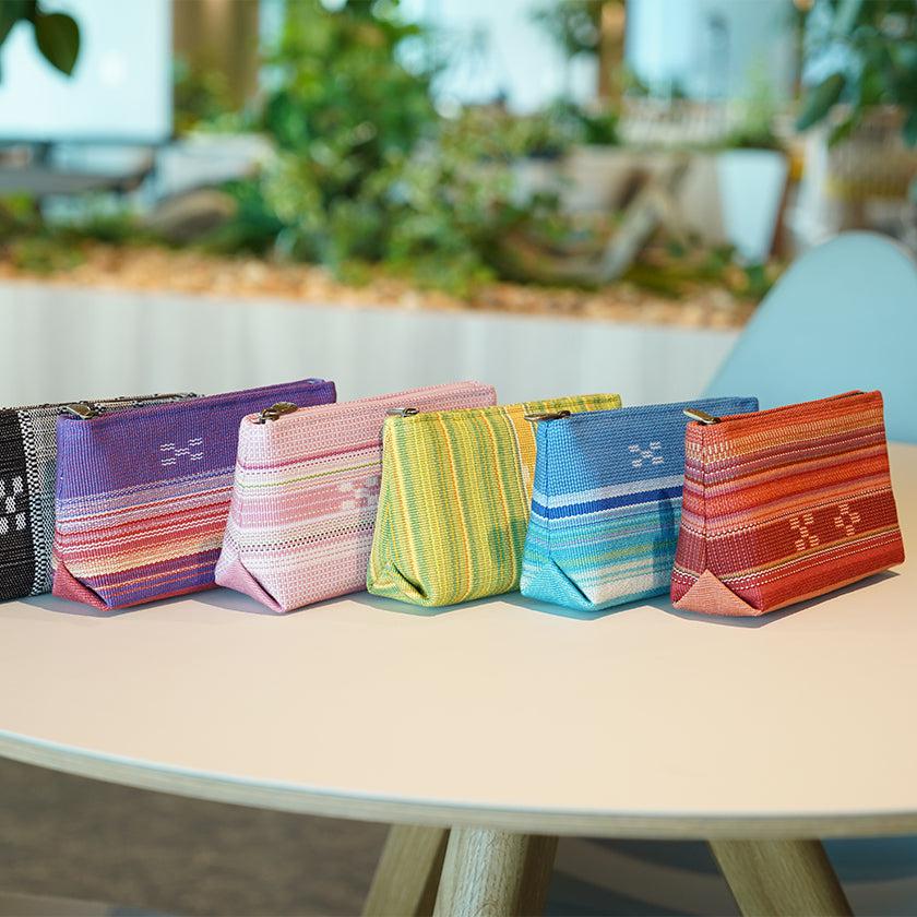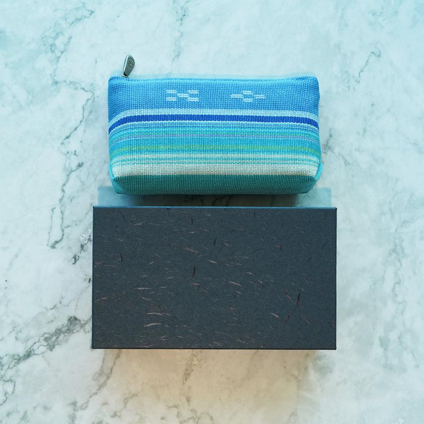 八重山の自然をモチーフにして糸を染め、熟練の職人が織りあげて作ったコンパクトサイズの使いやすいポーチです。
