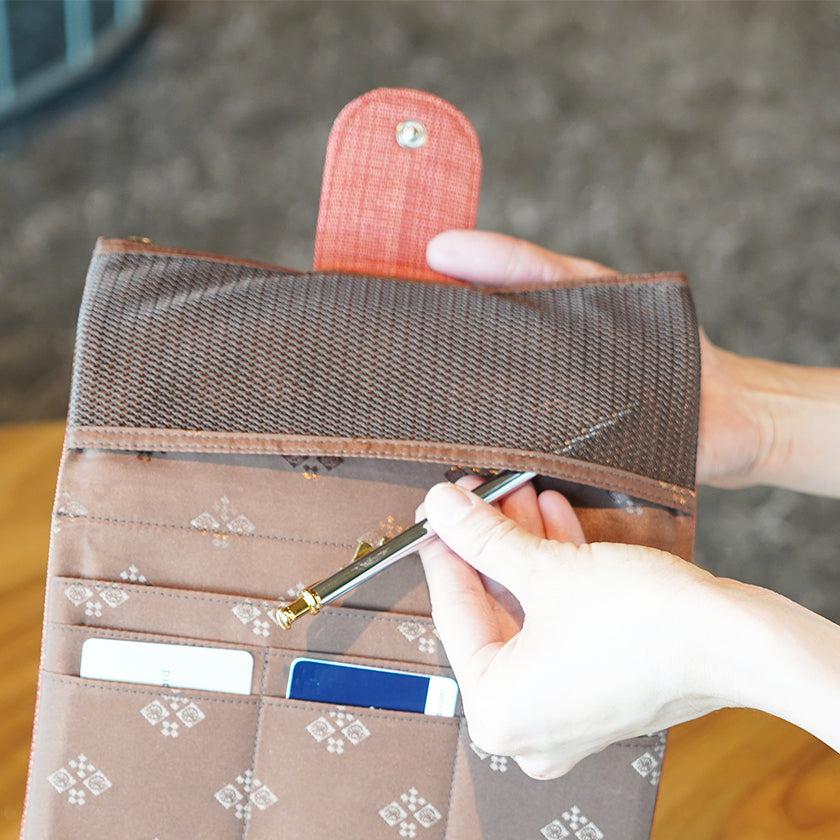 見た目以上の収納力なので、お財布代わりになることはもちろん、スマホやメイク用品、お薬などを入れられます。