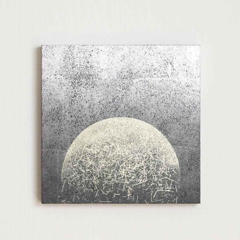 銀箔と墨のグラデーションを背景に細かめの金砂子と野毛でシンプルな環を描いたので、良質な素材と高級感が際立ちます。