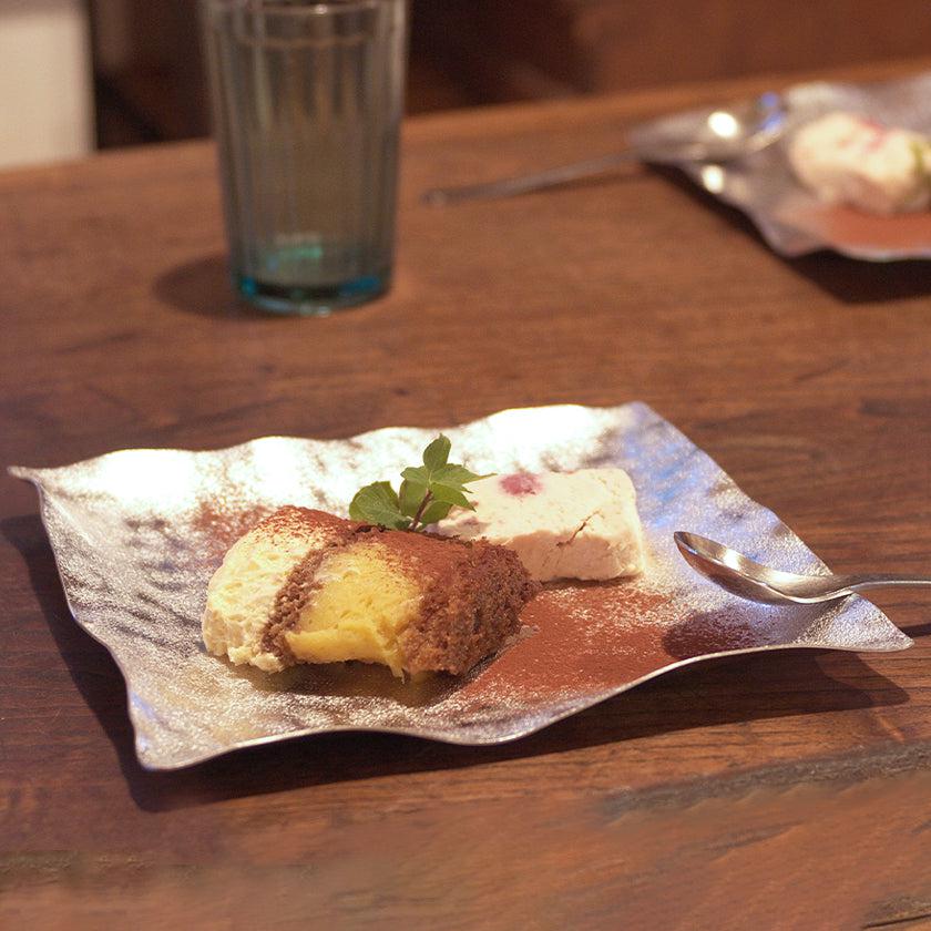 冷たいものを冷たいままで出せる錫の特性を生かして、サラダやケーキの取り皿など幅広く使えます。