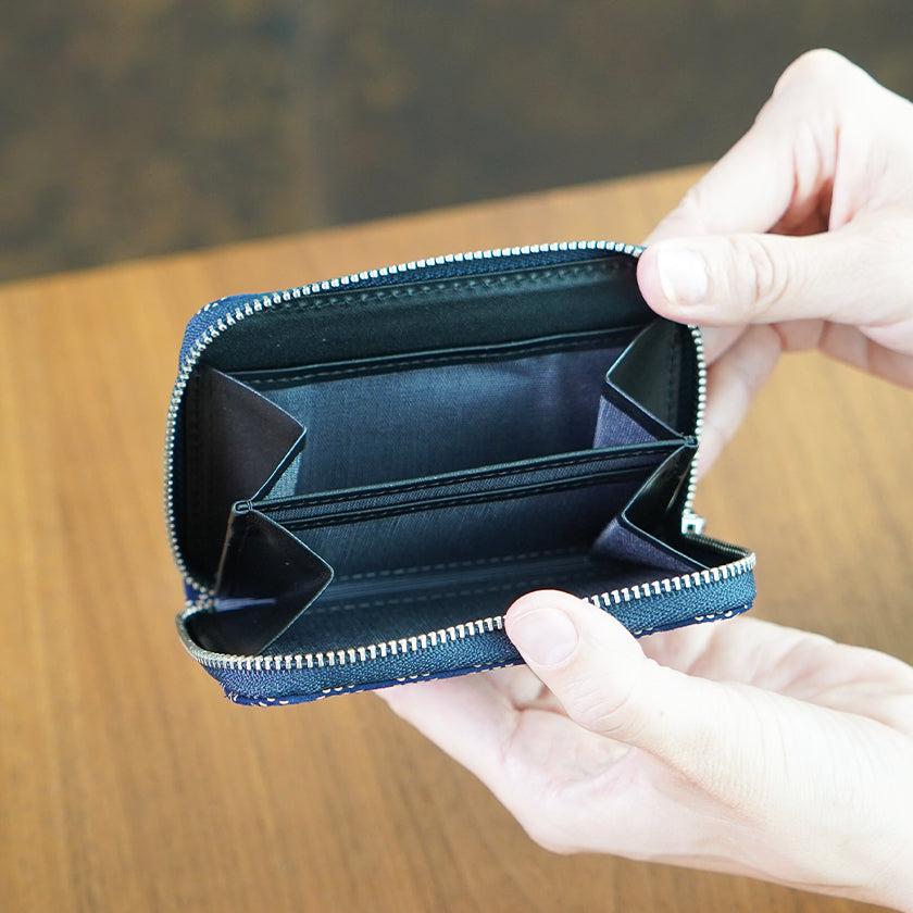ラウンド式ファスナーで仕切りが4つあり、紙幣や小銭、カードなどを分けて収納できます。