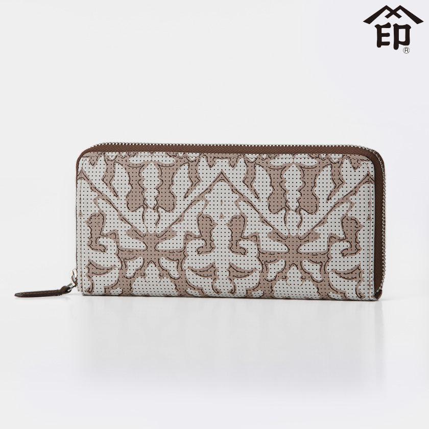 日本の伝統工芸である鹿革と漆の印伝に、ダマスク柄モチーフのオリジナルデザインを施した「サラマス」シリーズ。