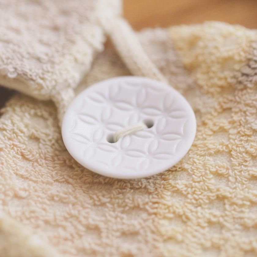 前掛けの色や波佐見焼のボタンにも願いをこめて大切に作りました。