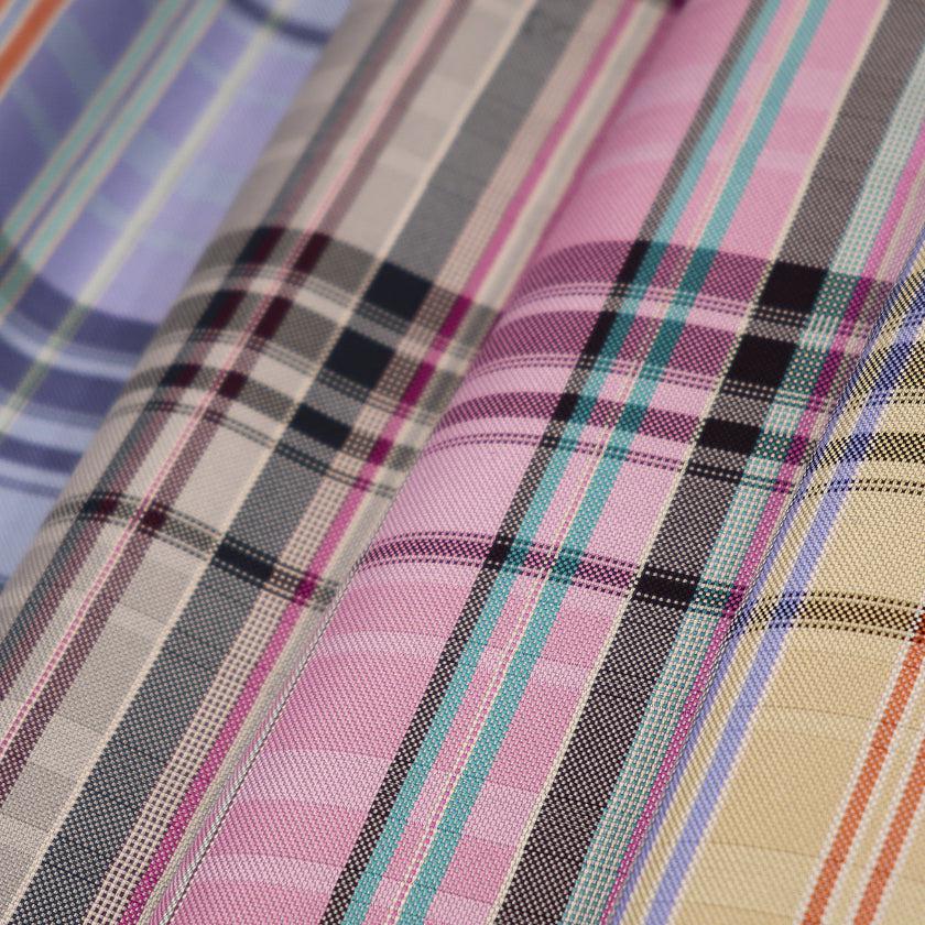 大人っぽいアッシュグレーを中心としたマルチチェックの織物は、角度により色が変わって楽しめます。
