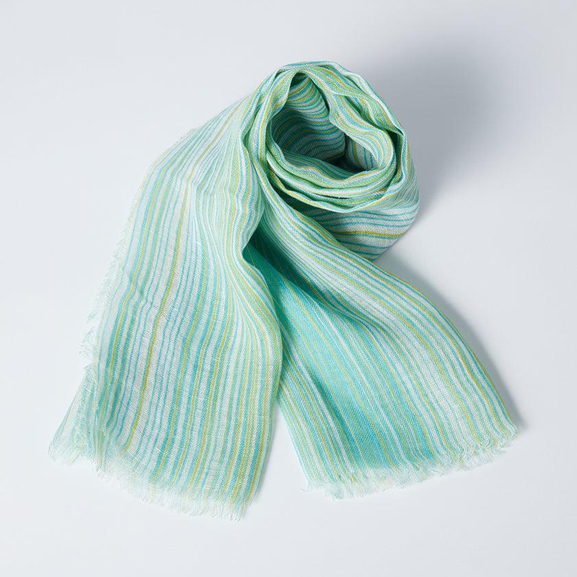 森を流れる川面のような色合いが涼を運ぶリネンストール。