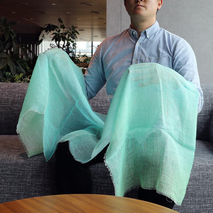 日本製の上質のリネン (亜麻) を使用しているので、使えば使うほど柔らかくなり、肌になじむのが特徴。