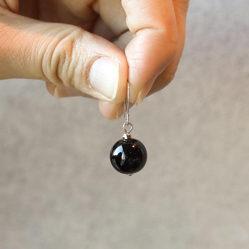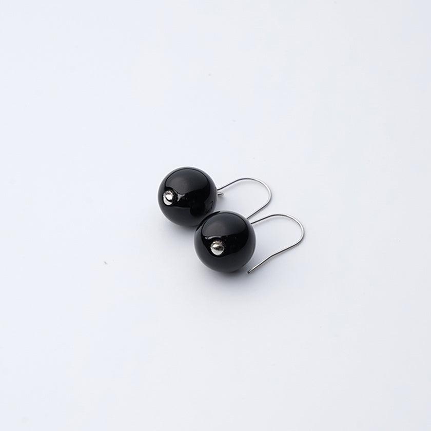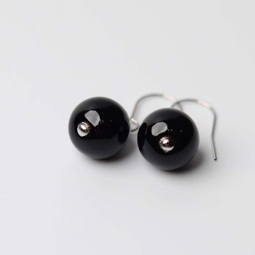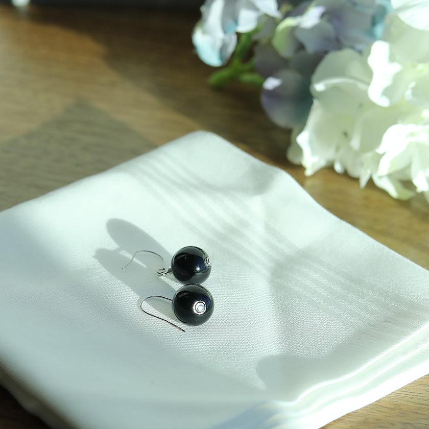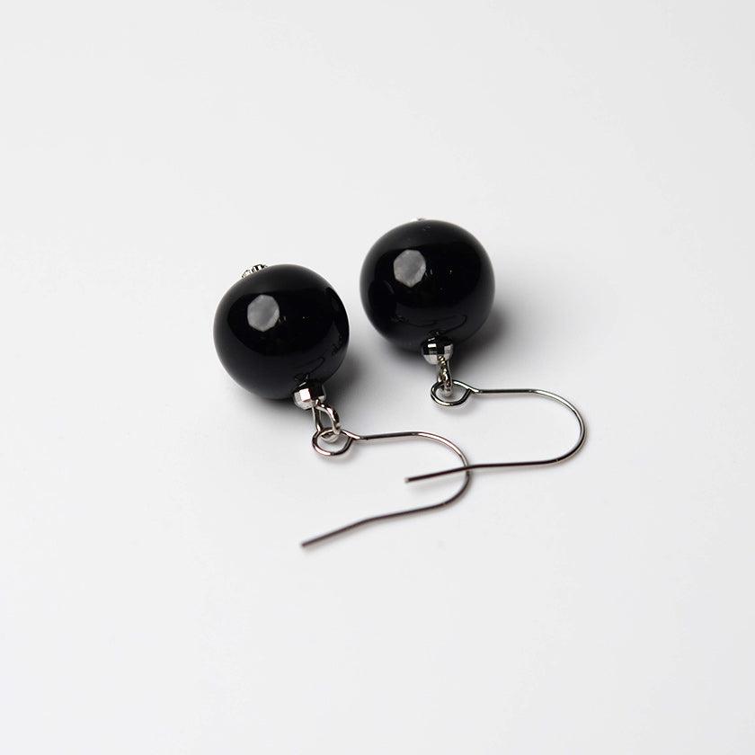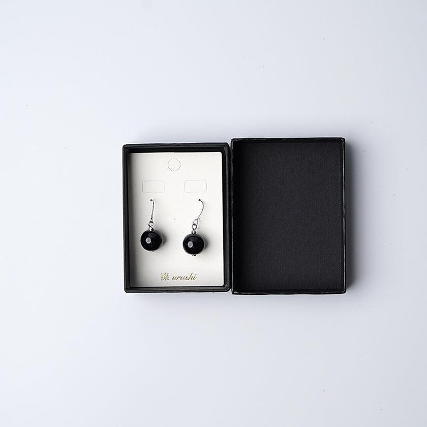 シックな雰囲気の黒のうるし珠ピアスです。