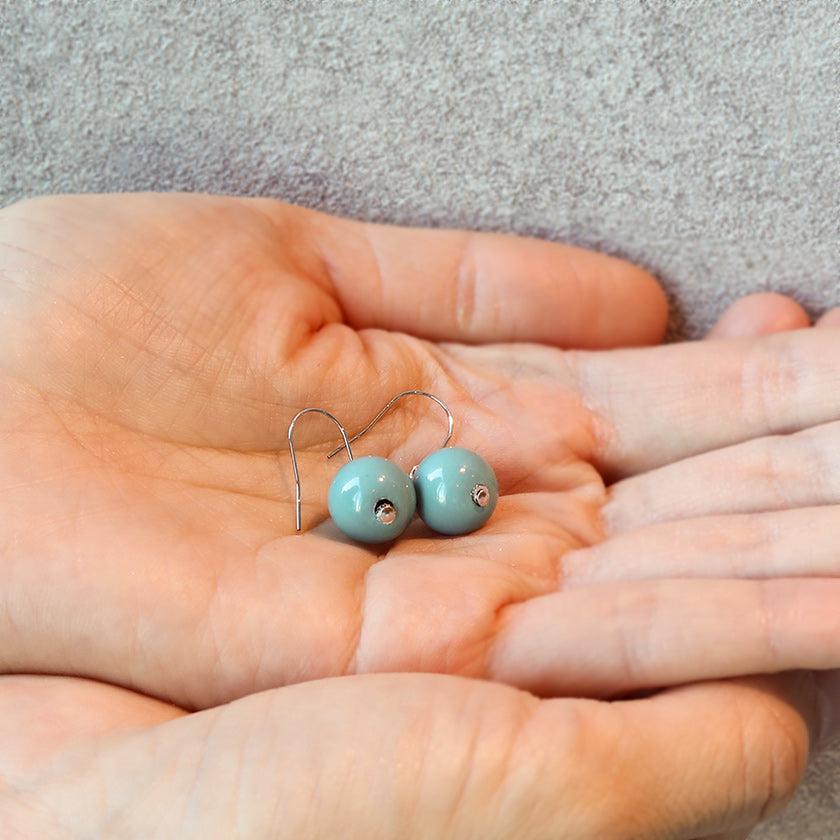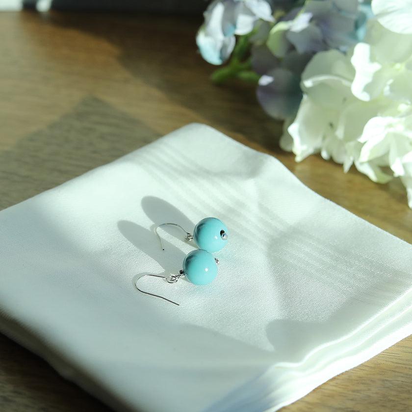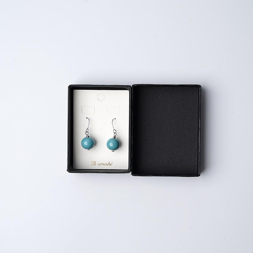 爽やかな水色のうるし珠ピアスです。