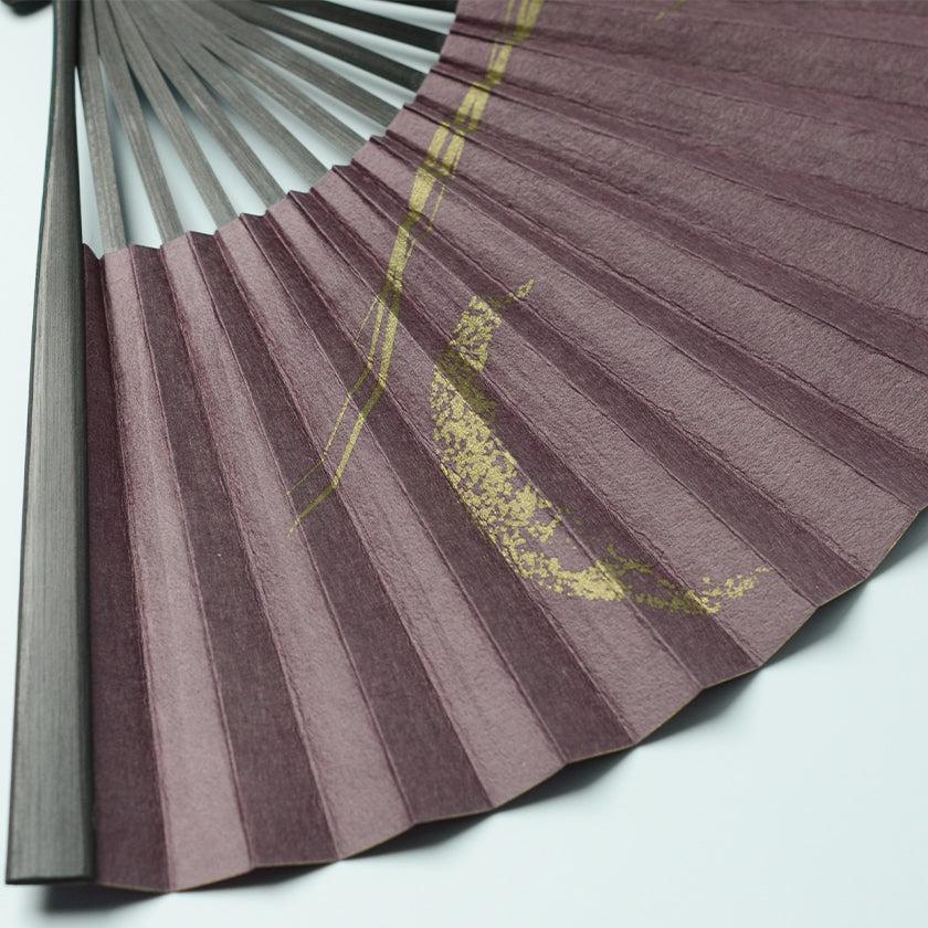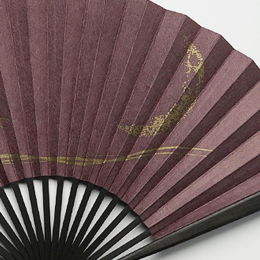 紫の和紙に銅色の 三ヶ月が印象的な江戸扇子