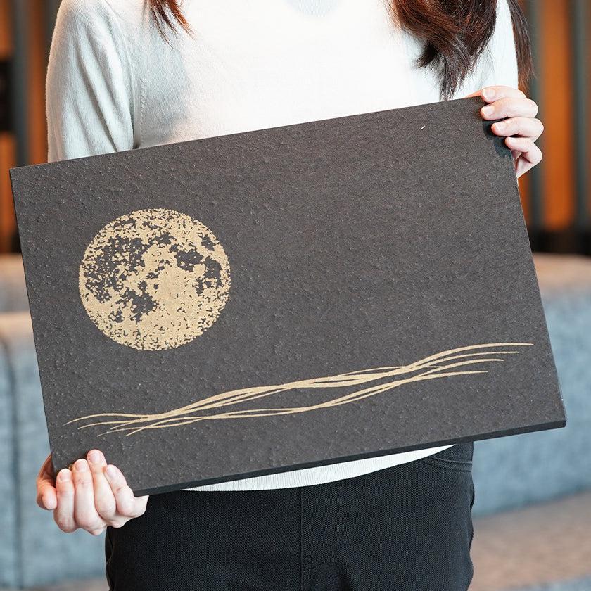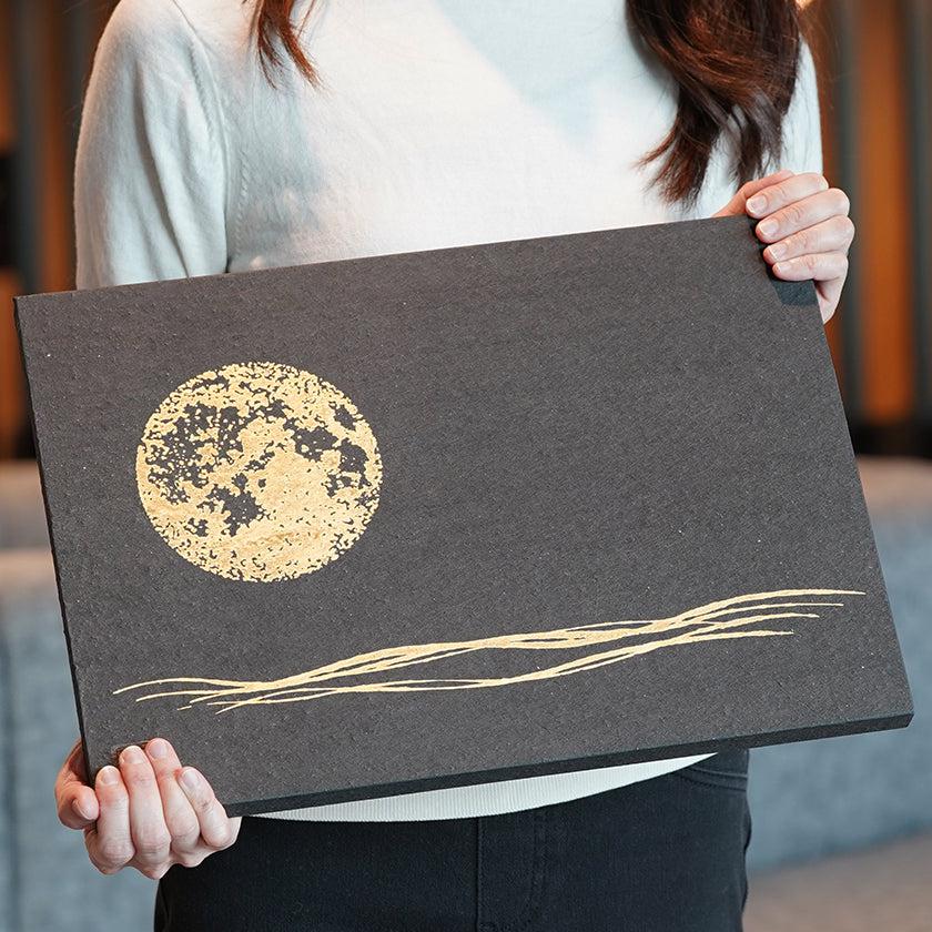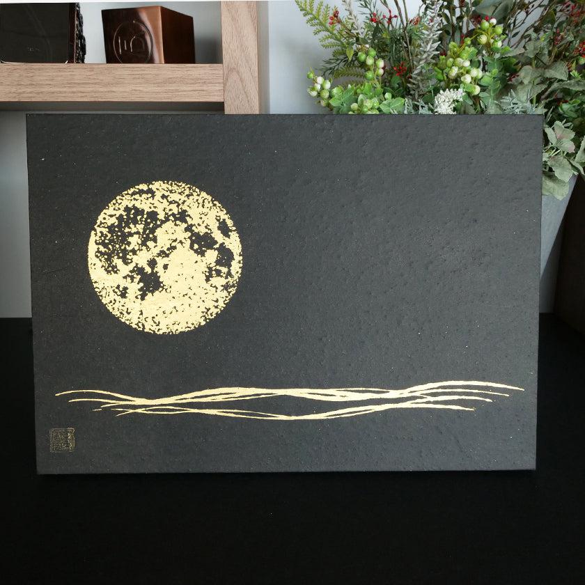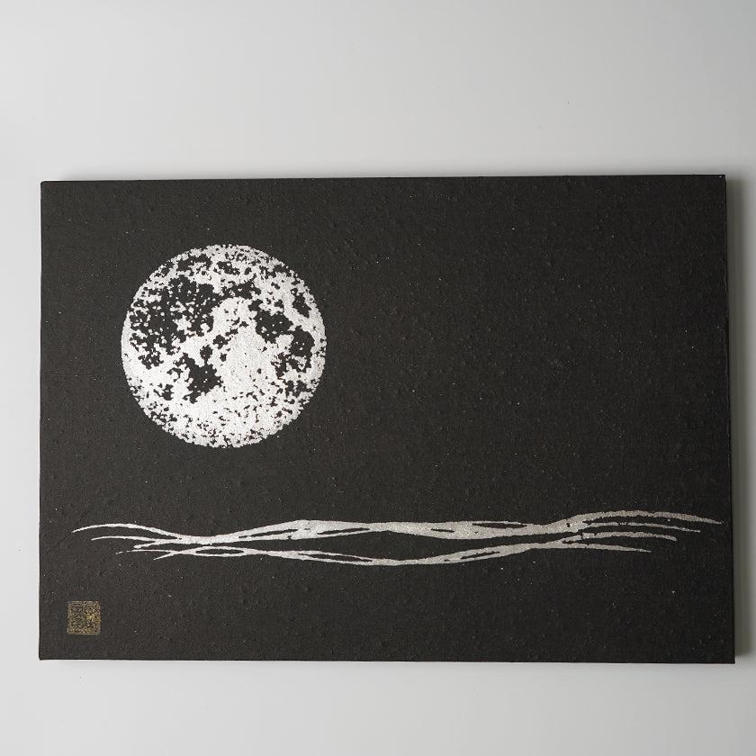 黒い和紙に満月が印象的なアートパネル
