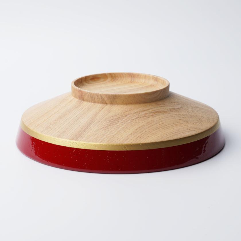 器の上部は、木目が見える「目はじき」の技法で塗り、下部は木目をそのまま生かして仕上げました。