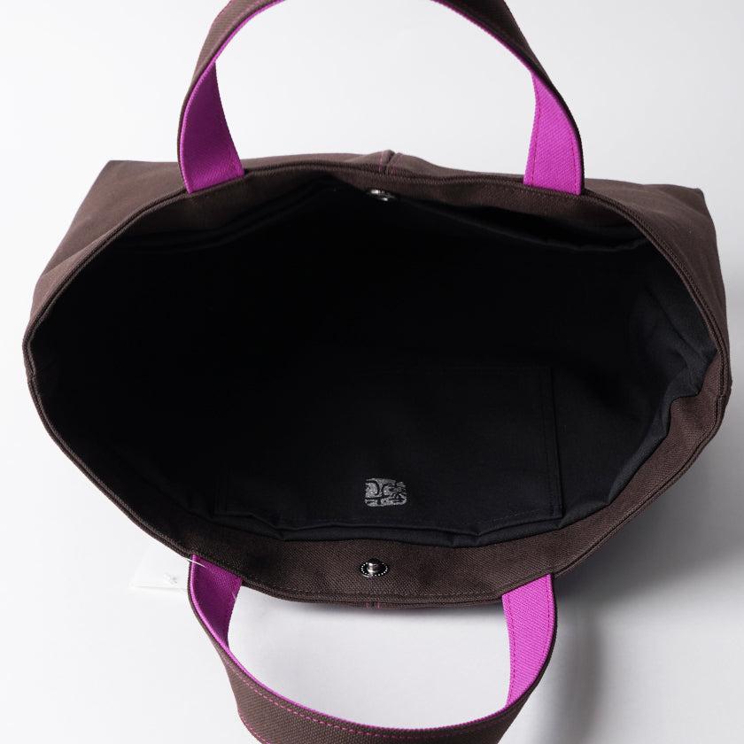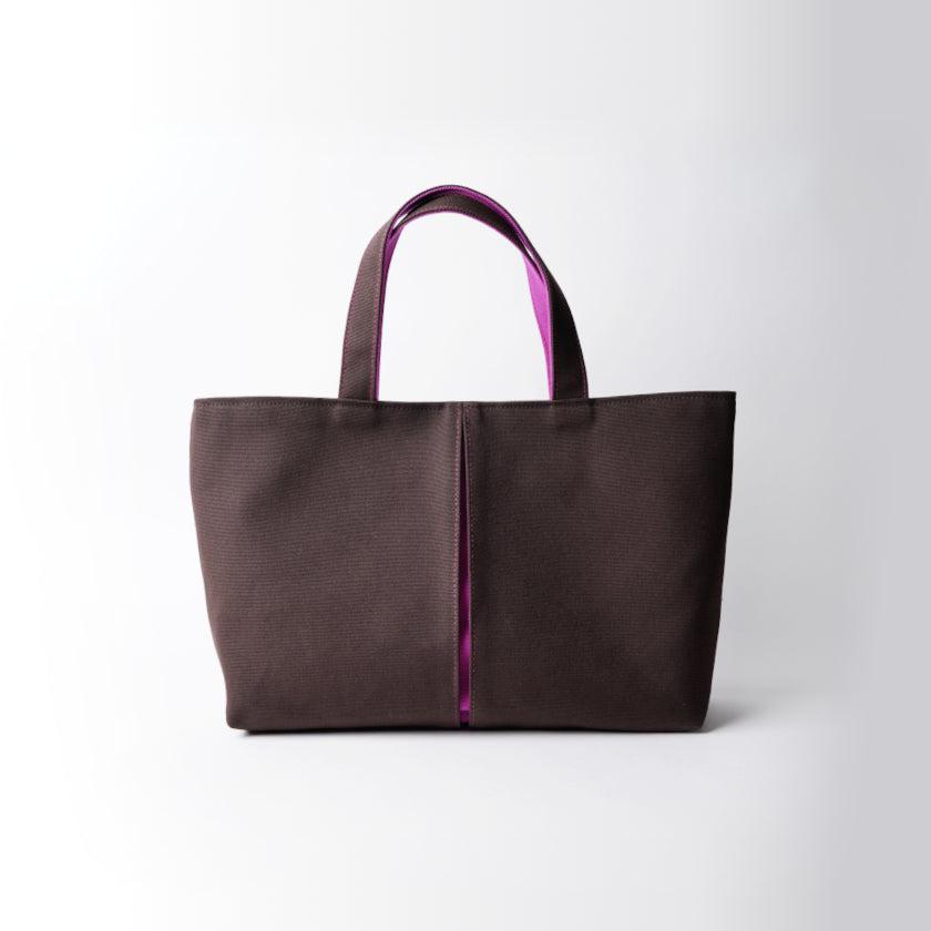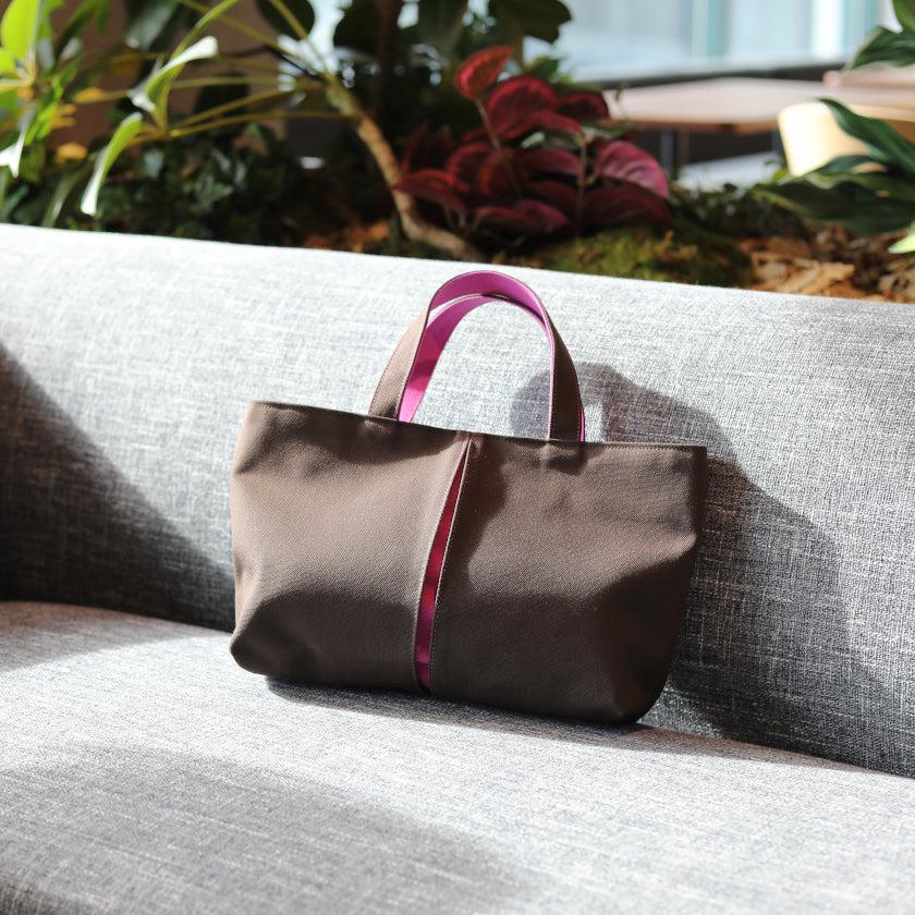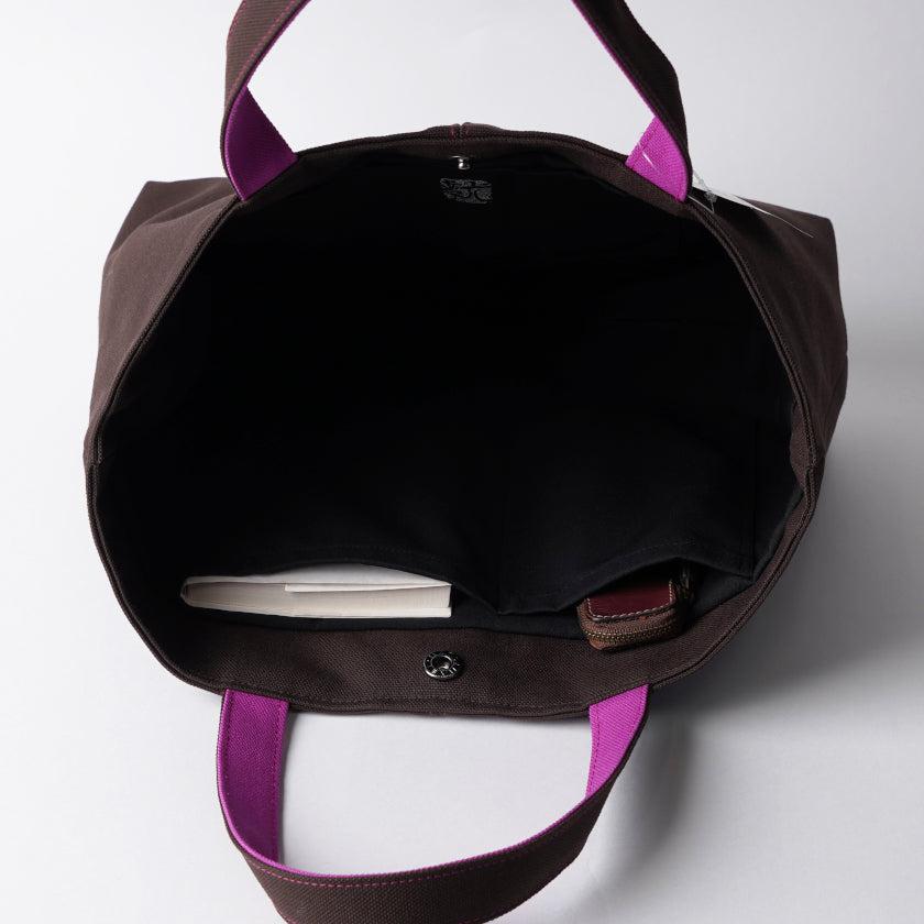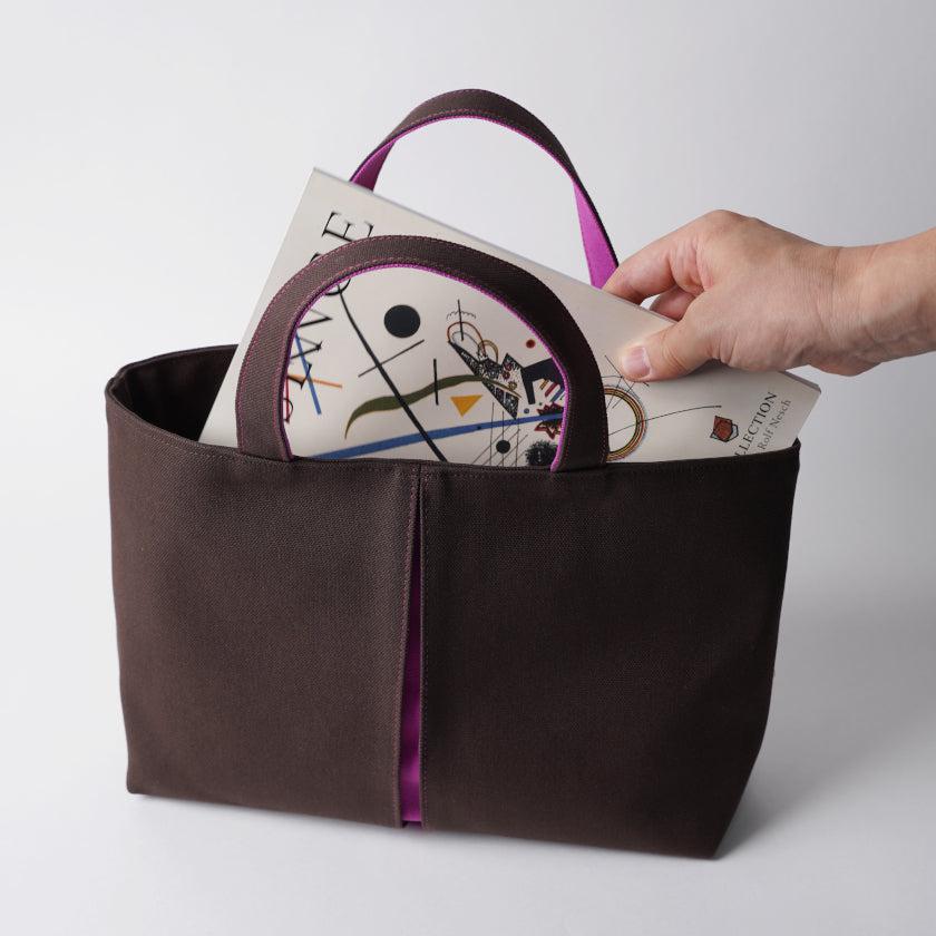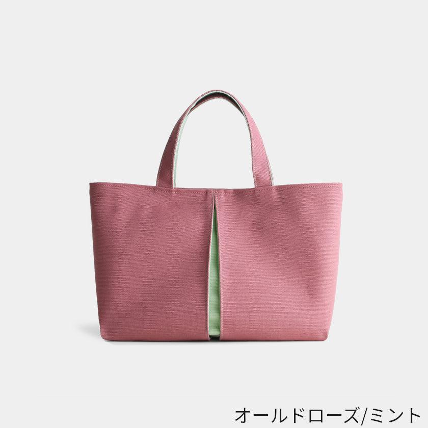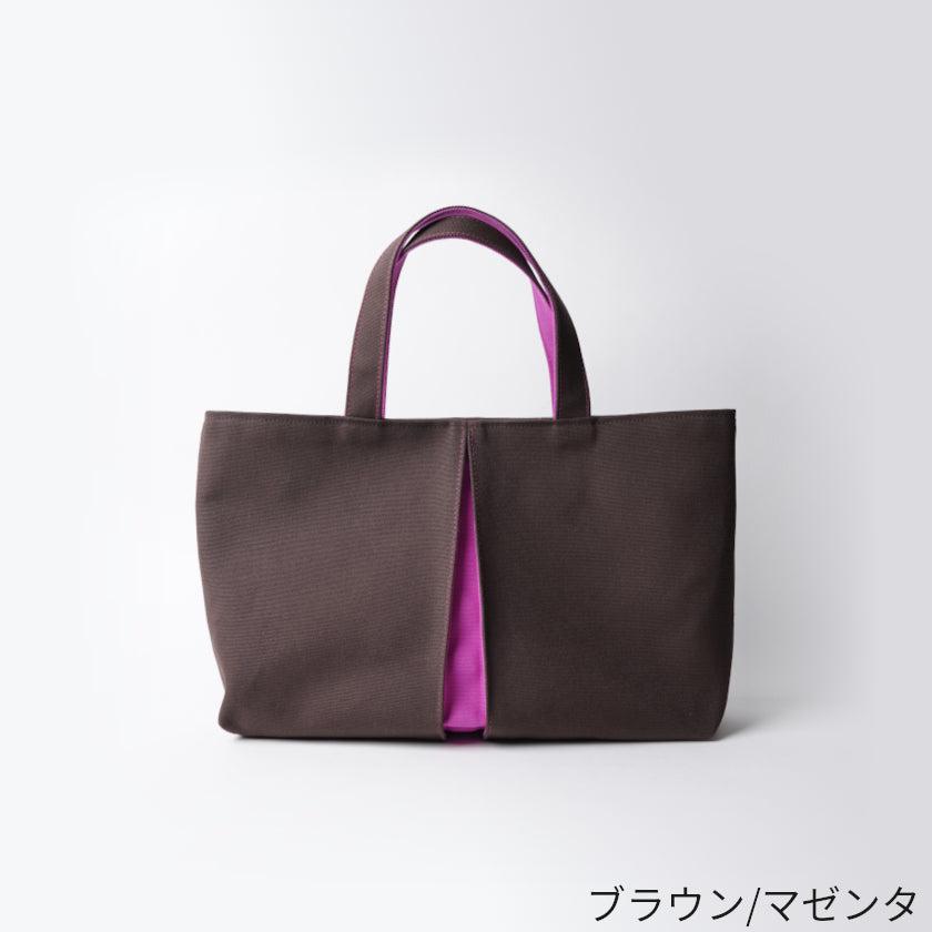 プリーツから見え隠れする挿し色が美しい、帆布の横長トートバッグです。