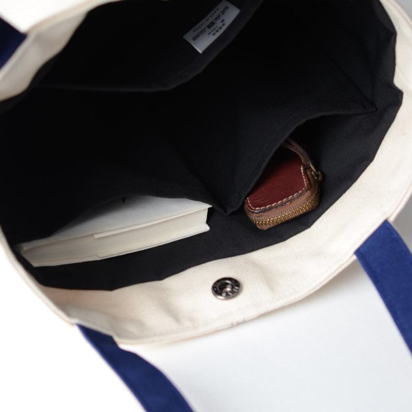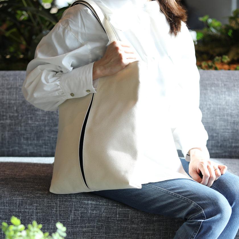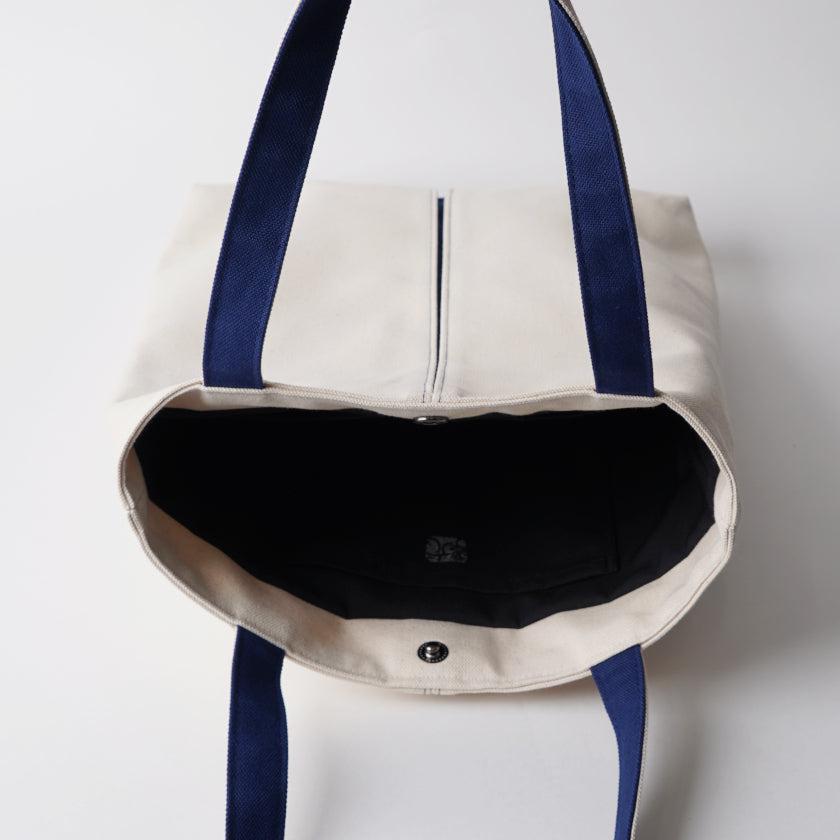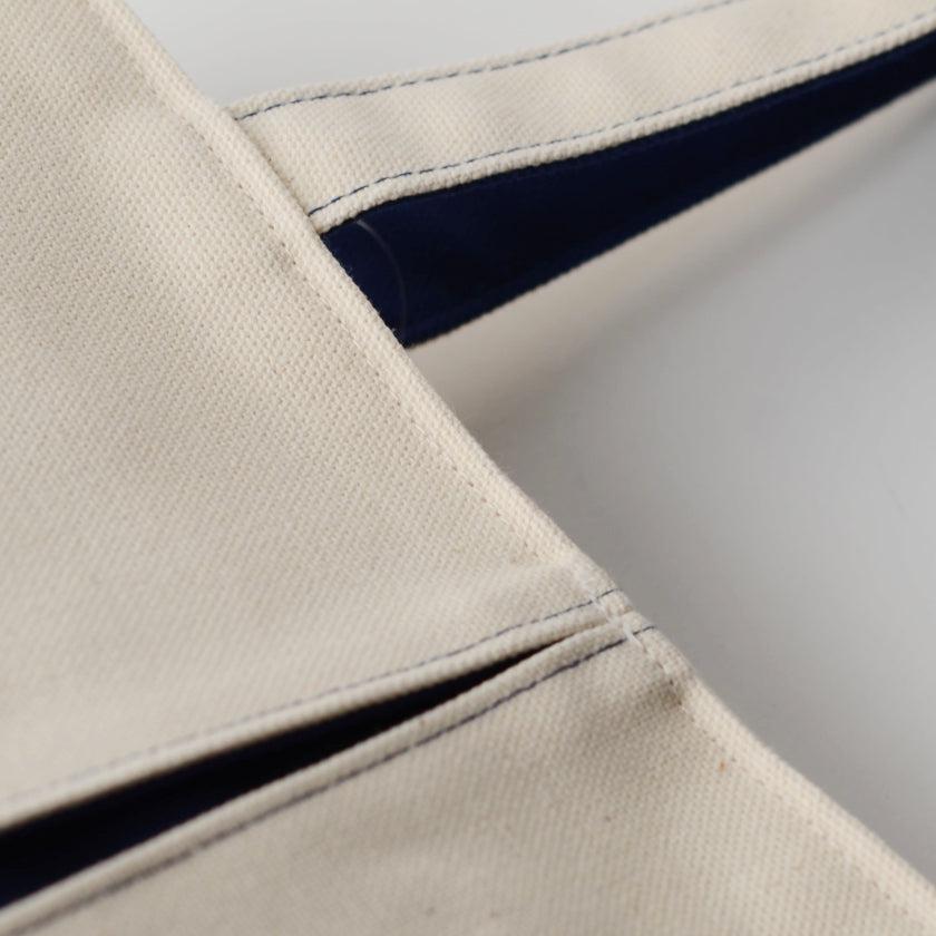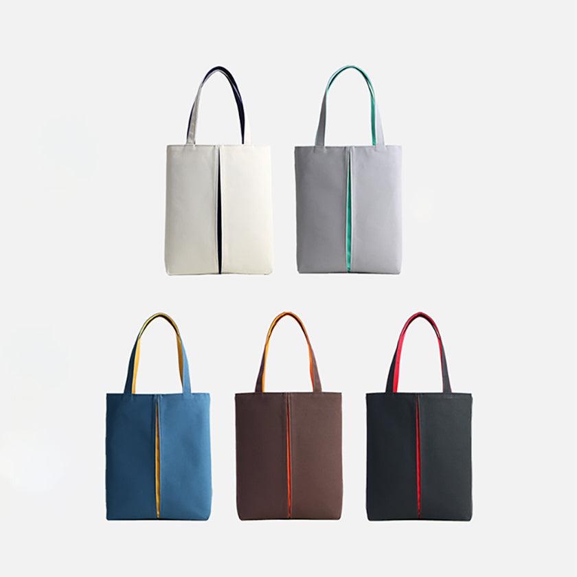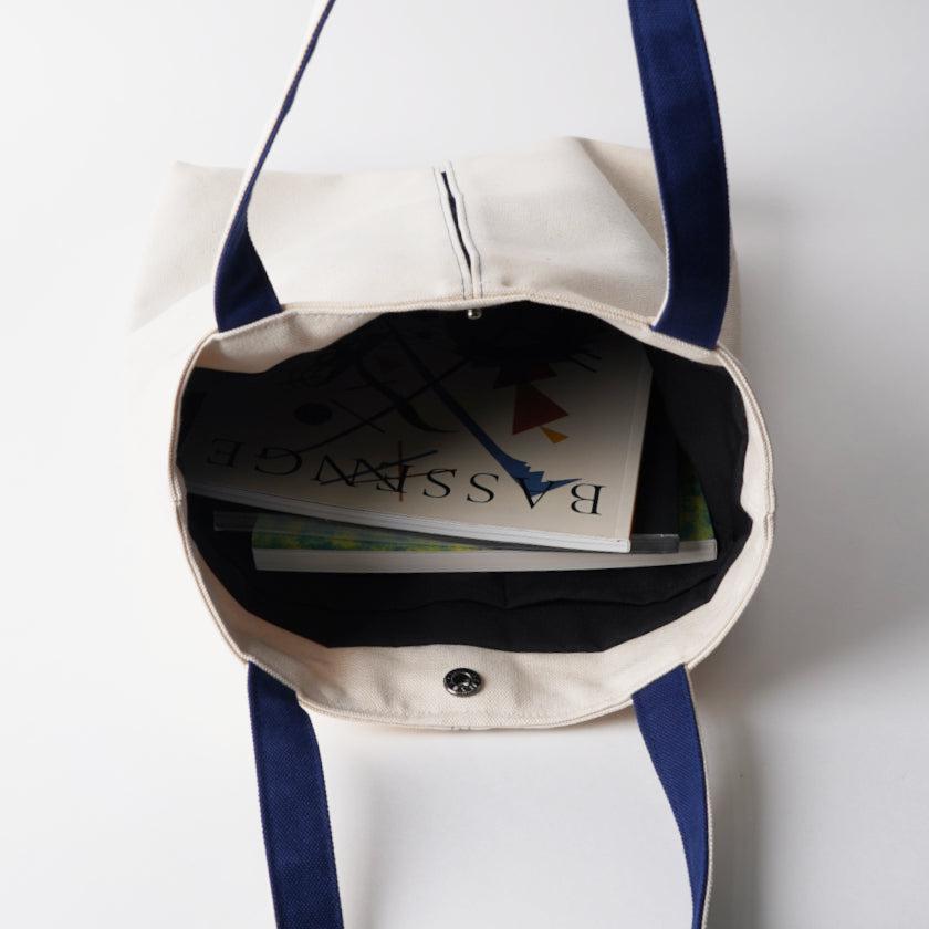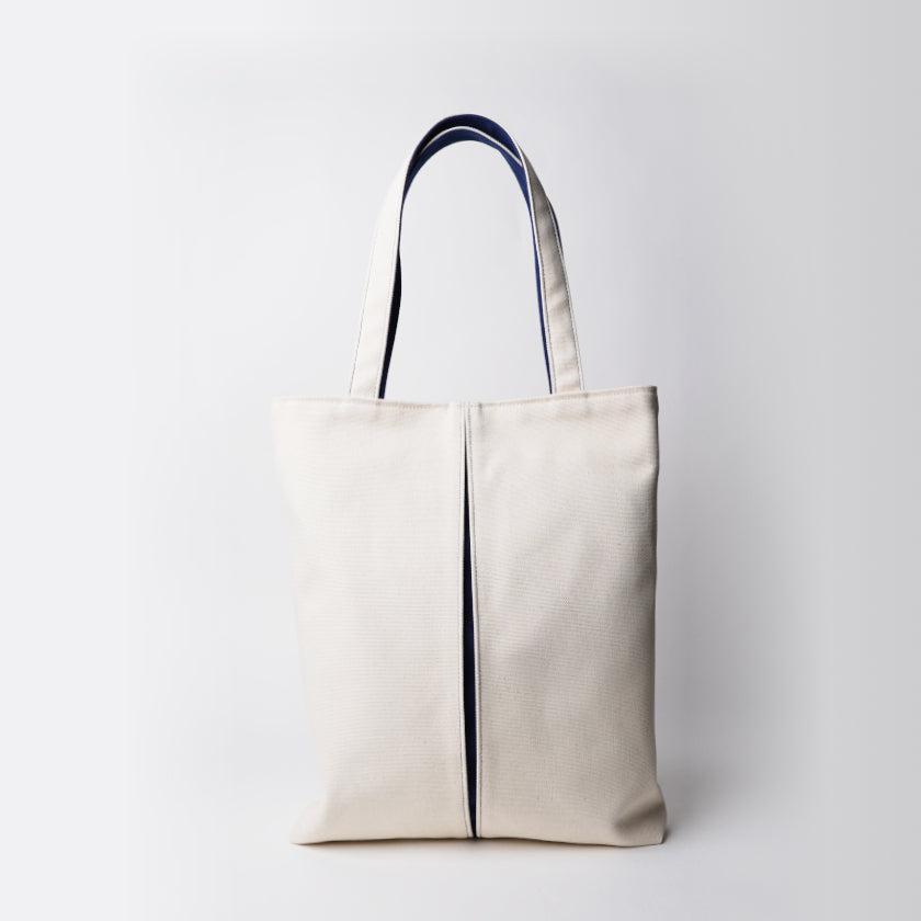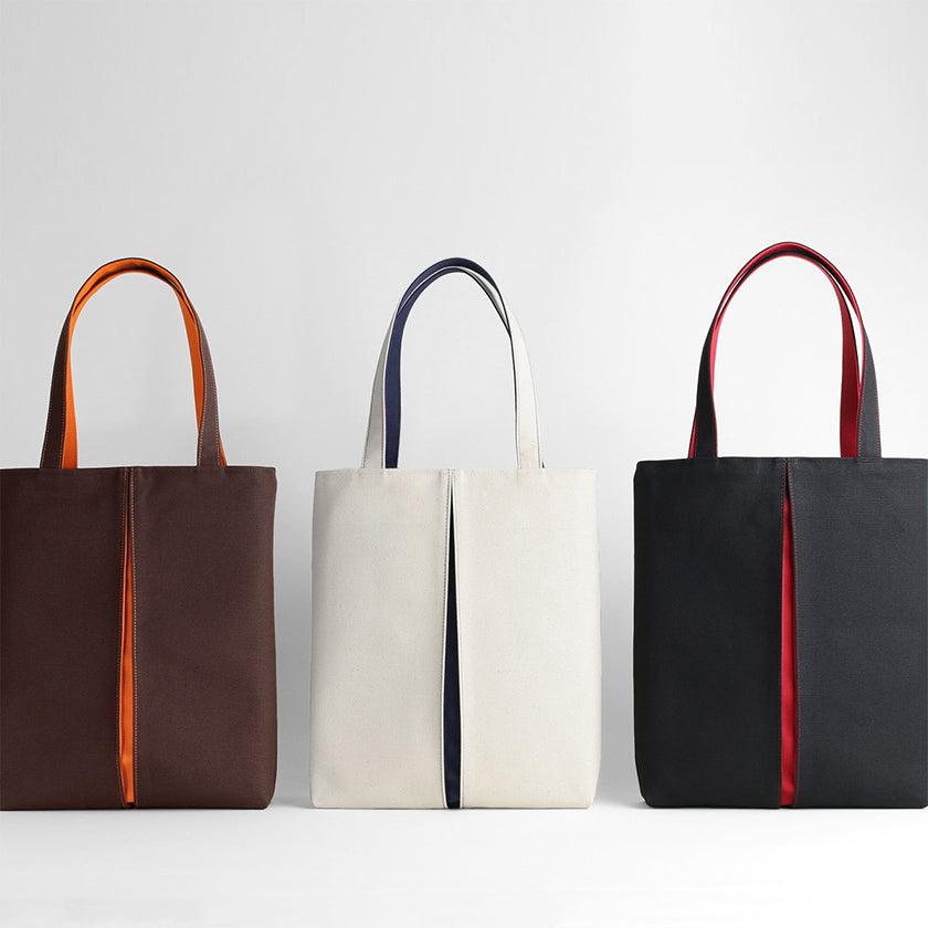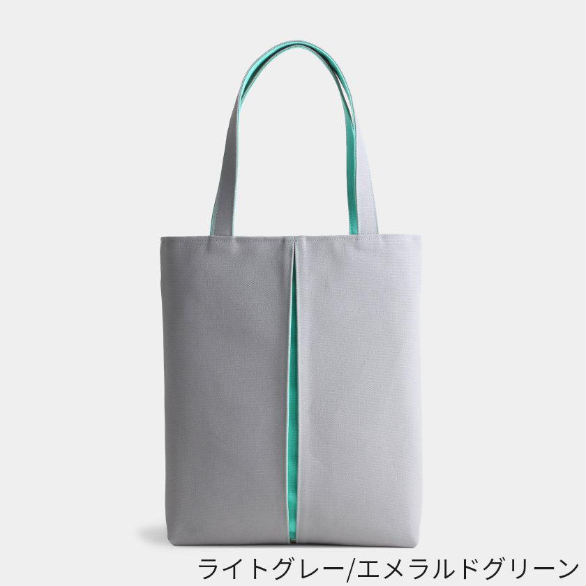 プリーツから見え隠れする挿し色が美しい、帆布の縦長トートバッグです。