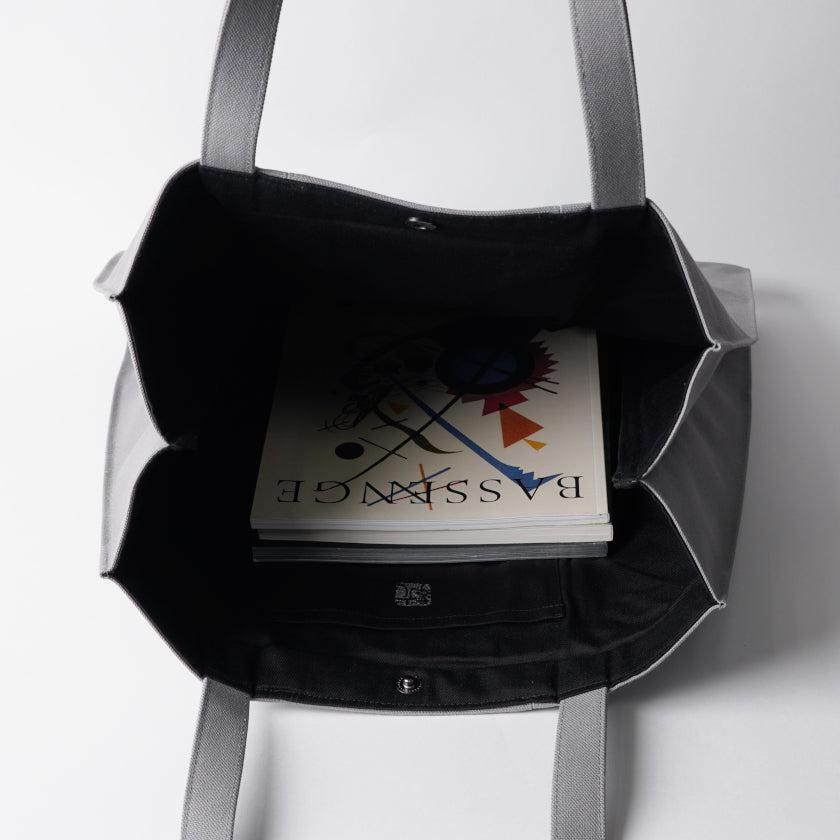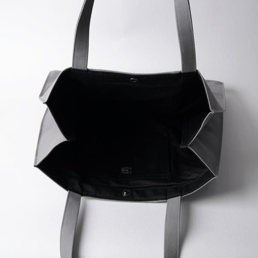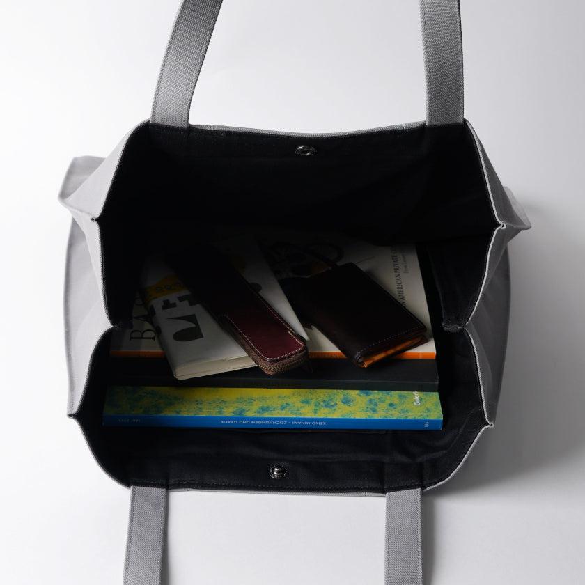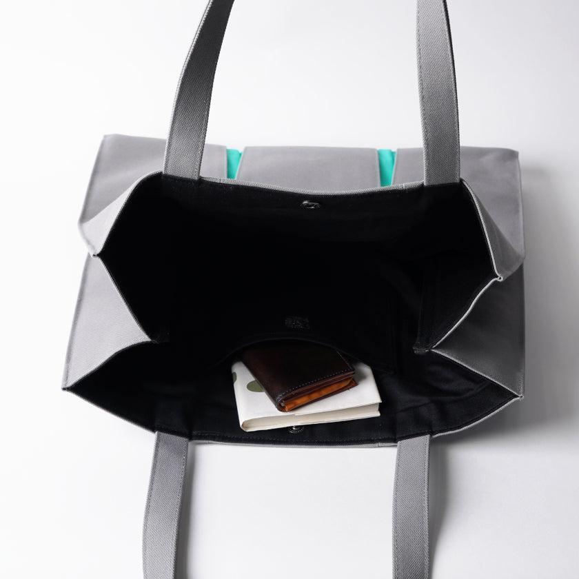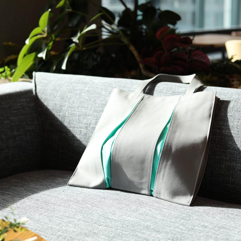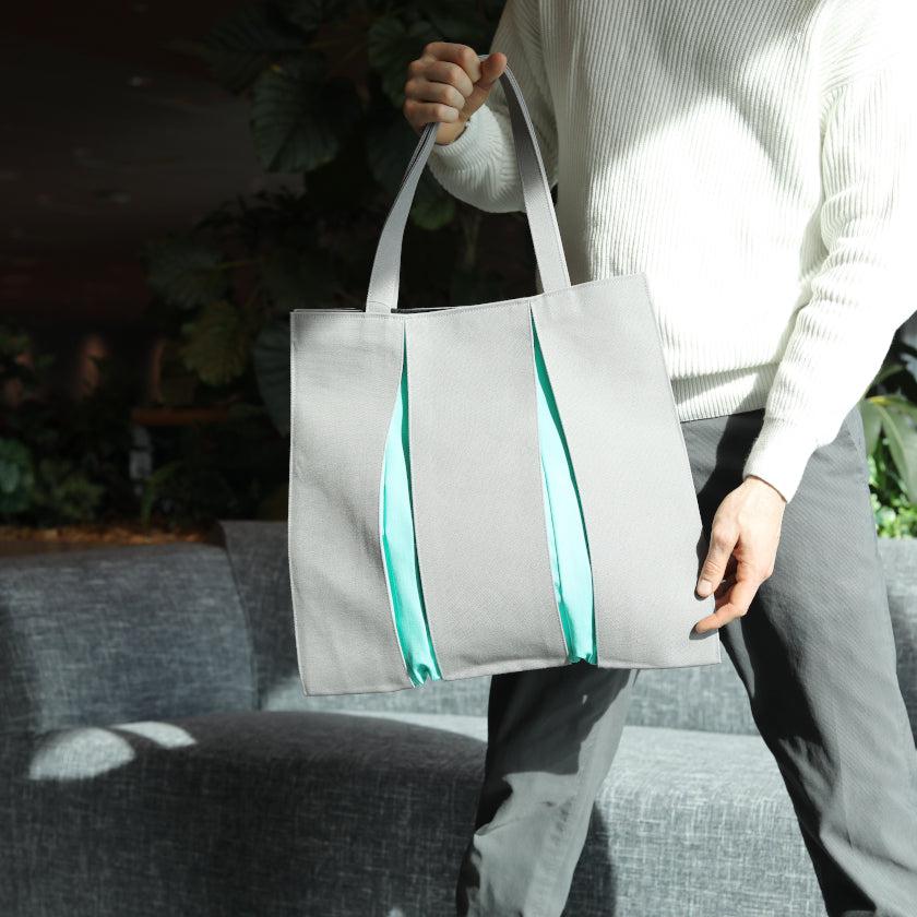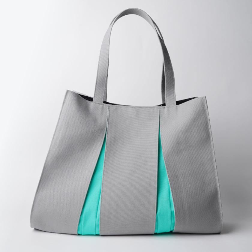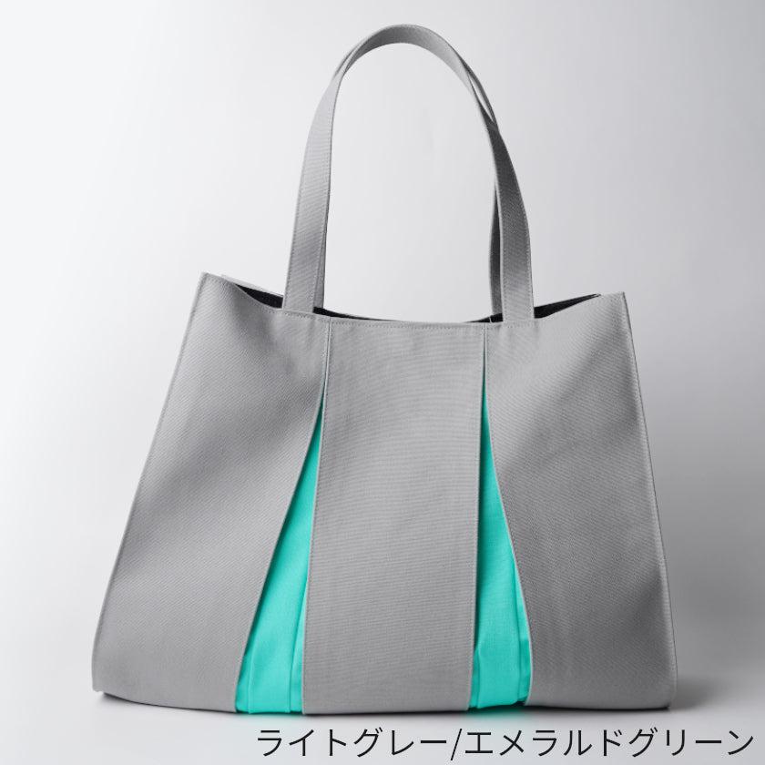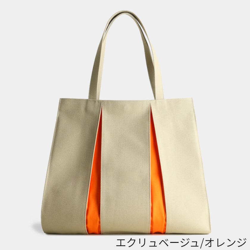 プリーツから見え隠れする挿し色が美しい、帆布のトートバッグです。