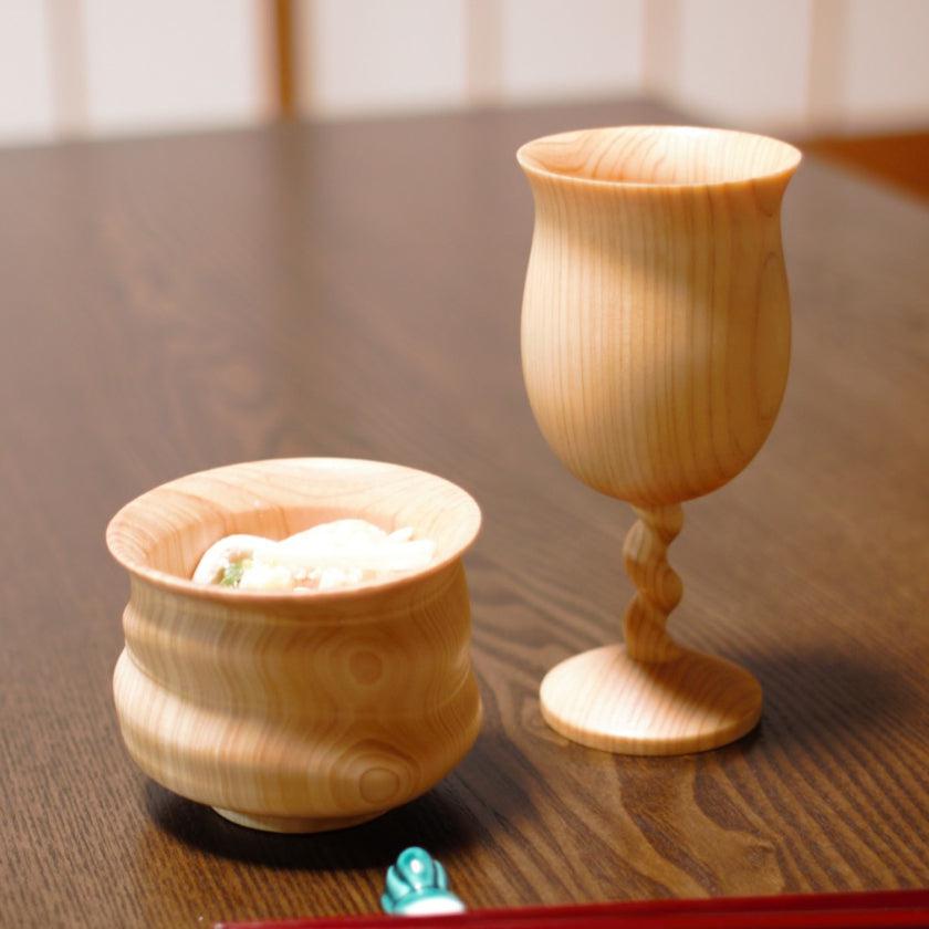 京都産の上質な木材「みやこ杣木」を使用した「木の幸」シリーズのワイングラスです。