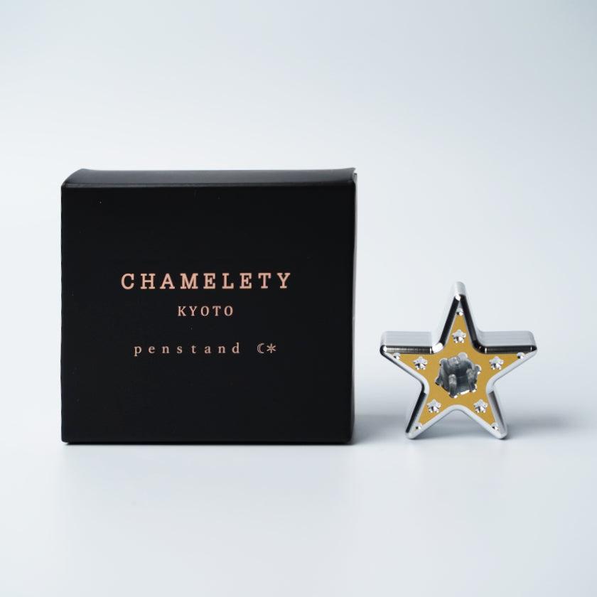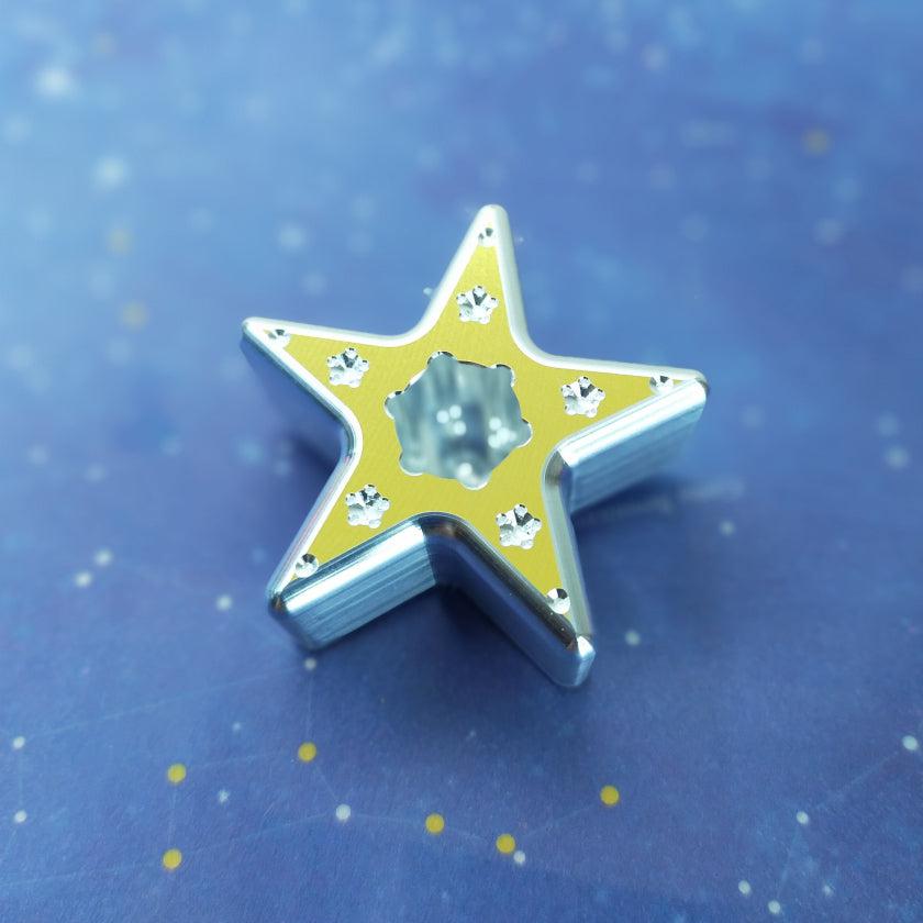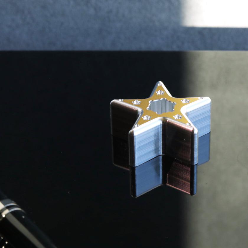 金色と銀色のコンビネーションが美しい、アルミニウム製の星形ペンスタンド(1本用)です。
