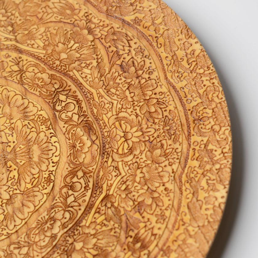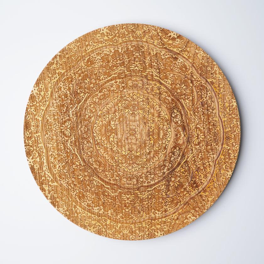 花紋のまわりをレーザーで彫刻することで、立体的に見せています。