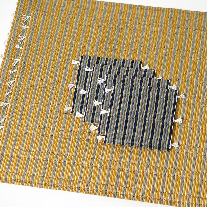 ブルーのコースターとイエローのランチョンマットのセット