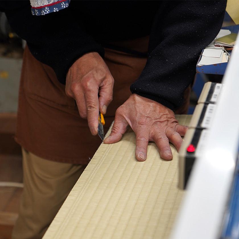 福岡県柳川市の特産品である柳川織の畳表を、私たち畳屋が4代受け継ぐ技で仕上げました。