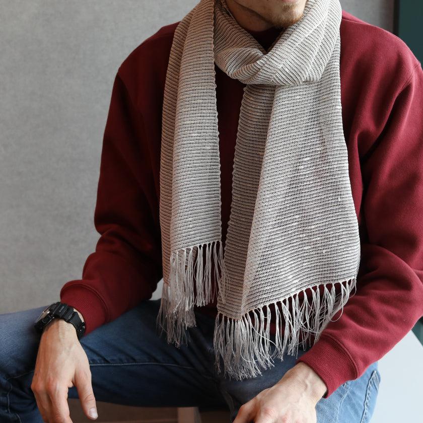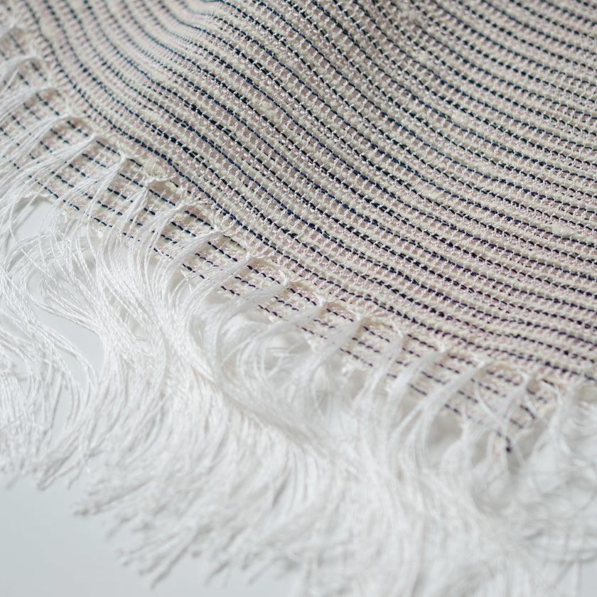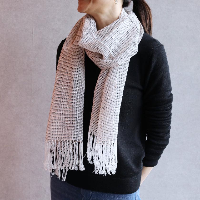 白・紺・桜のトリコロールカラーのストールは、性別問わずフォーマルにもカジュアルにも合います。