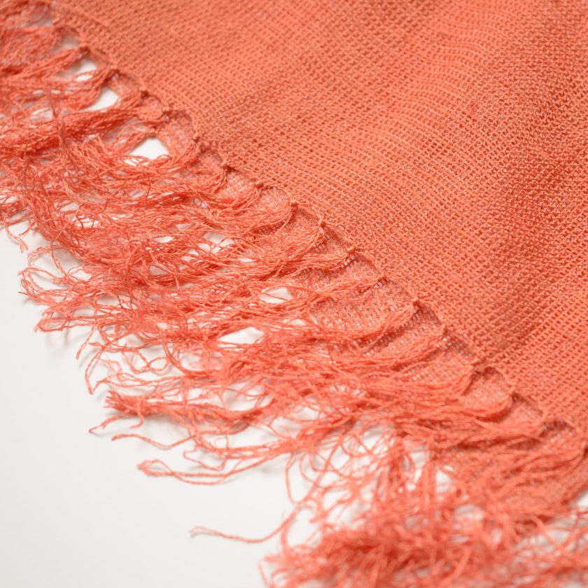 鮮やかな茜色の草木染ストールは、和装にも洋装にも合う逸品です。
