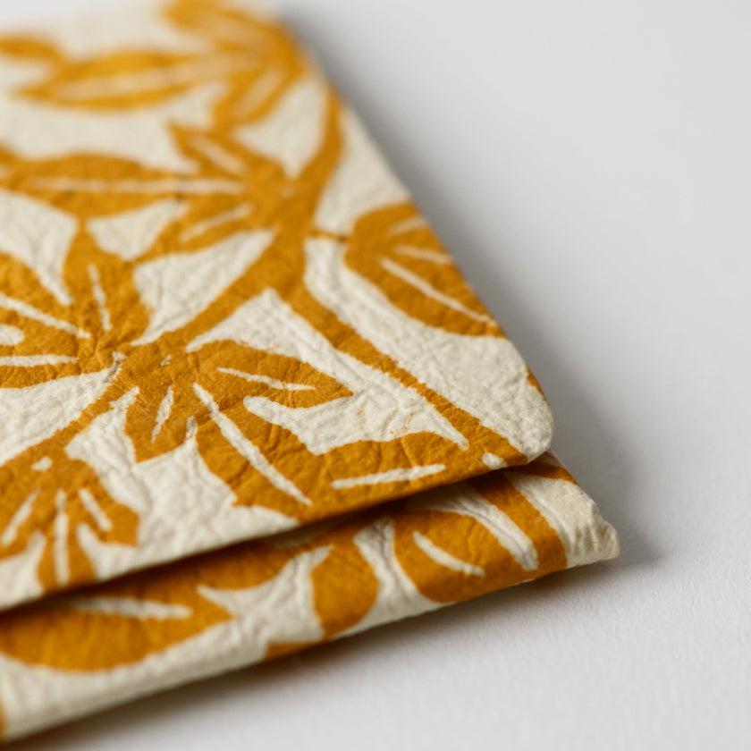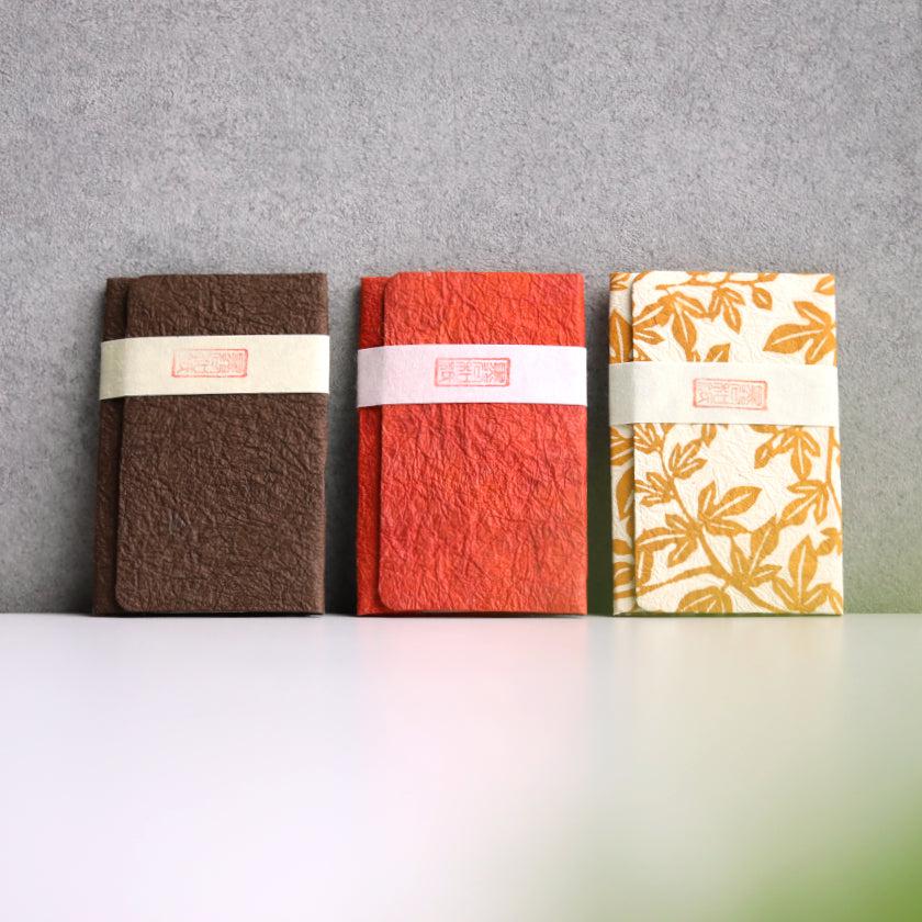 800年以上の歴史を誇る黒谷和紙に、着物にも使われる型染めの手法で楮の木の模様を施した名刺入れです。