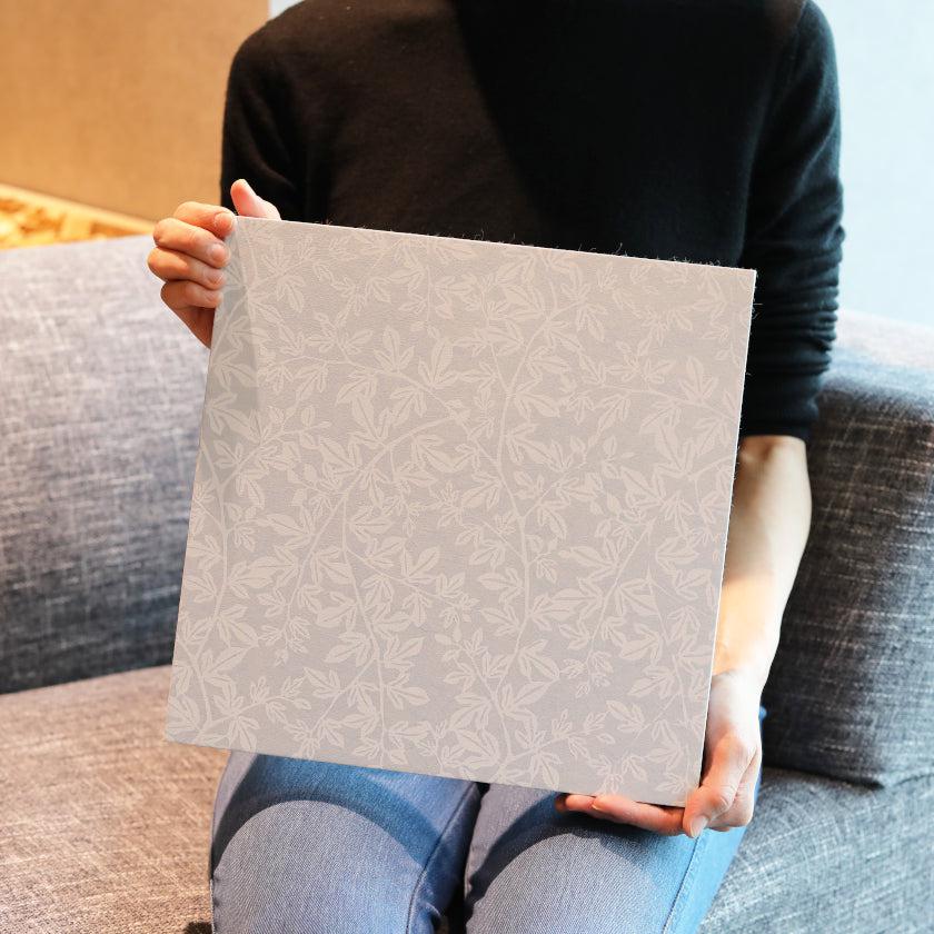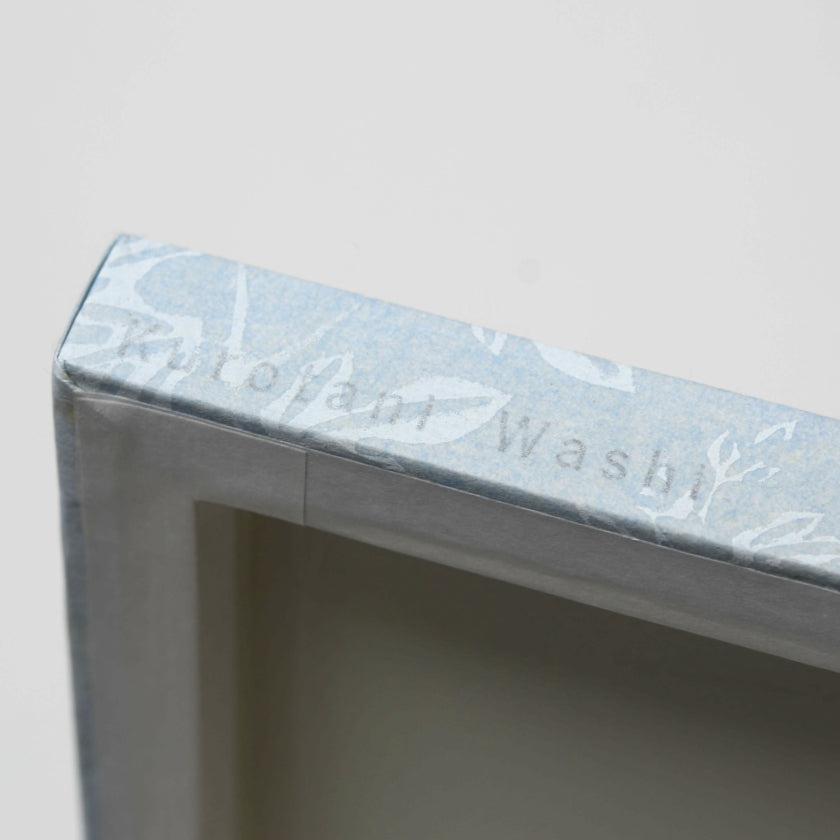 800年以上の歴史を誇る黒谷和紙に、着物にも使われる型染めの手法で、楮の木の模様を施したファブリックボードです。