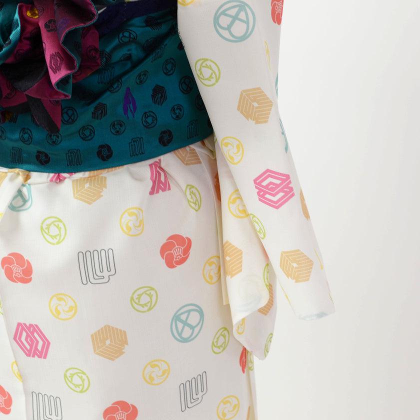 日本の伝統的なデザイン「尽くし紋様」から生まれた「初音尽くしモノグラム」の浴衣です。