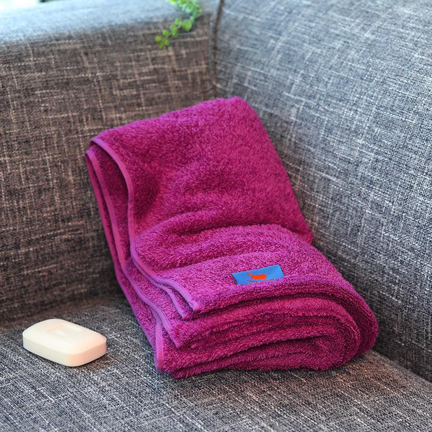 タオルのサイズは70×145cm。高身長の男性でも使いやすい大判バスタオルです。濡れた髪や全身を拭いてもなお余裕がある使用感。たっぷりとした大きさで、お風呂上がりの身体を包み込んでくれます。