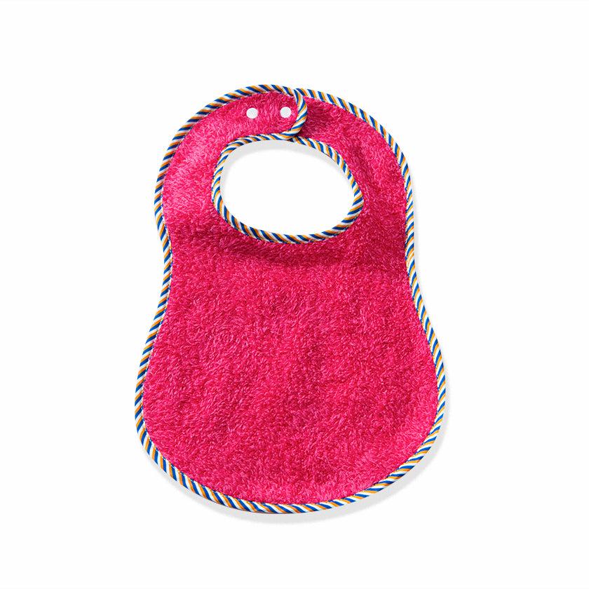 スタイの縁取りとタオルのループにはエアメールを連想させるデザインがほどこされていて、さりげなくも明るい表情にしてくれています。