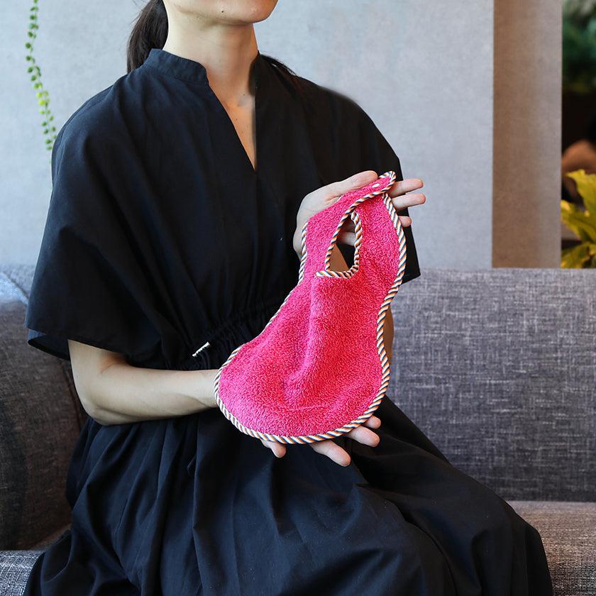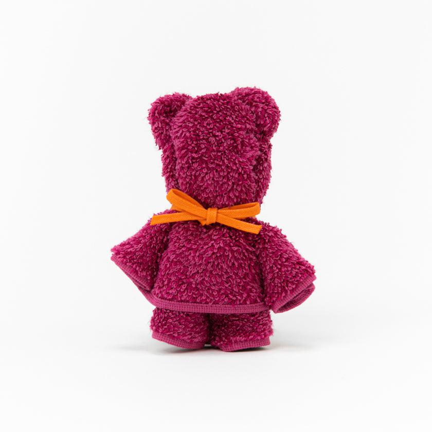 チーフベアは、開けるとハンカチタオルに。サイズは25cm×25cmの正方形。短いパイルでポケットやバッグの中でもかさばらず、必要な時には鮮やかな色がすぐ目に入る優れもの。四つ角は、職人の手作業で丁寧に縫製されているので、型崩れしづらいのが特徴です。