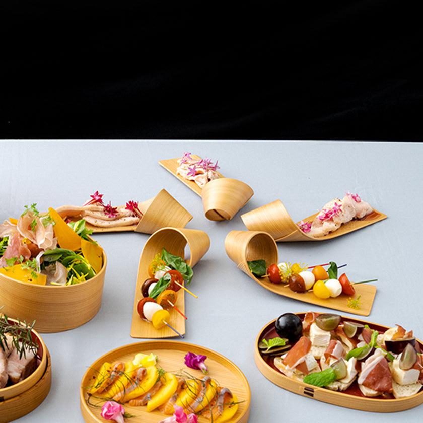 曲げわっぱにひねりを加えた唯一無二のデザインです。