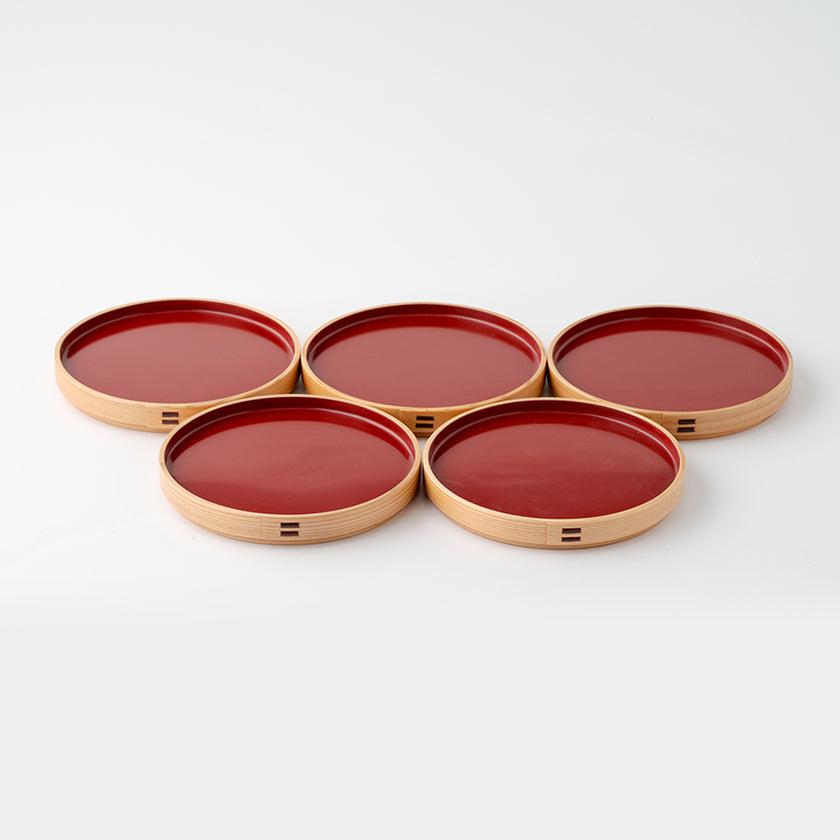 大館曲げわっぱの老舗「栗久」による、銘々皿5枚セットです。秋田杉の美しい木目は食卓に取り入れやすく、和・洋・中どのようなメニューとも相性抜群!機能性に優れており、5枚セットでさまざまなシーンで使えるのも魅力です。お料理好きの方、食器にこだわりたい方への贈り物に最適な銘々皿は、「木目」と「朱」の2色から選べます。