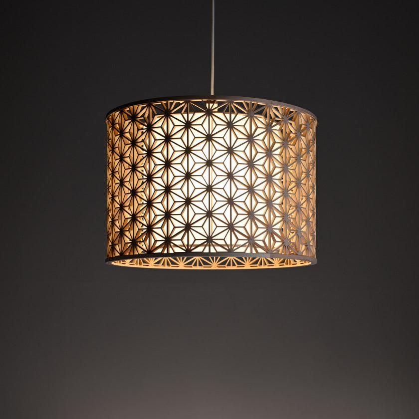 伝統工芸である組子細工を独自の特許技術で円柱型に仕上げた、温かみのあるペンダントライトです。