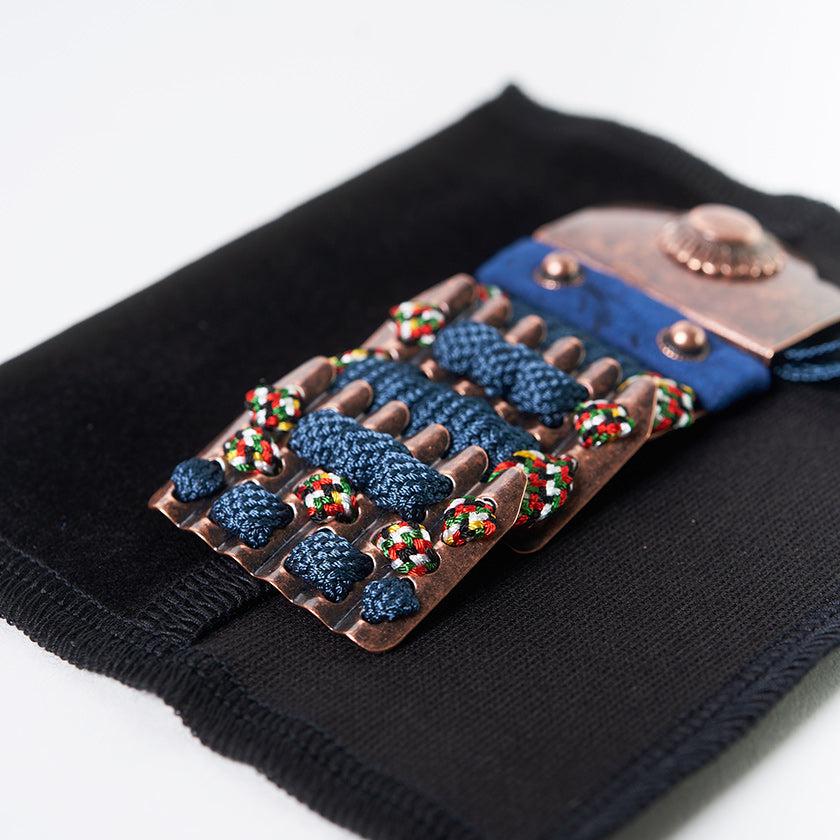 主な材料は銅や鹿革、絹の編み紐。甲冑そのものは古くからあるものなのに、日常に取り入れるアイテムとしては新しさを感じます。伝統的な技法を用いていて、全て手作りなので、それぞれに表情をもっているのも素敵ですね。