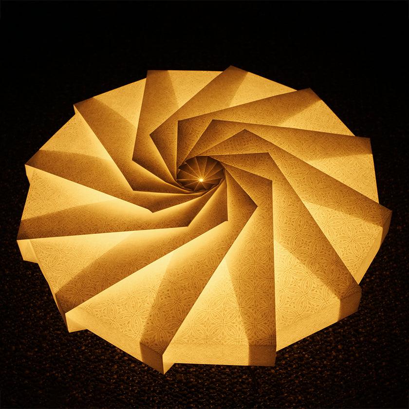 奈良時代から続く京表具の伝統技術と、折り紙を融合させたフレームのない照明です。