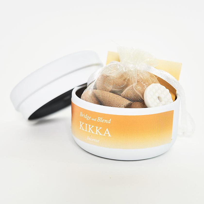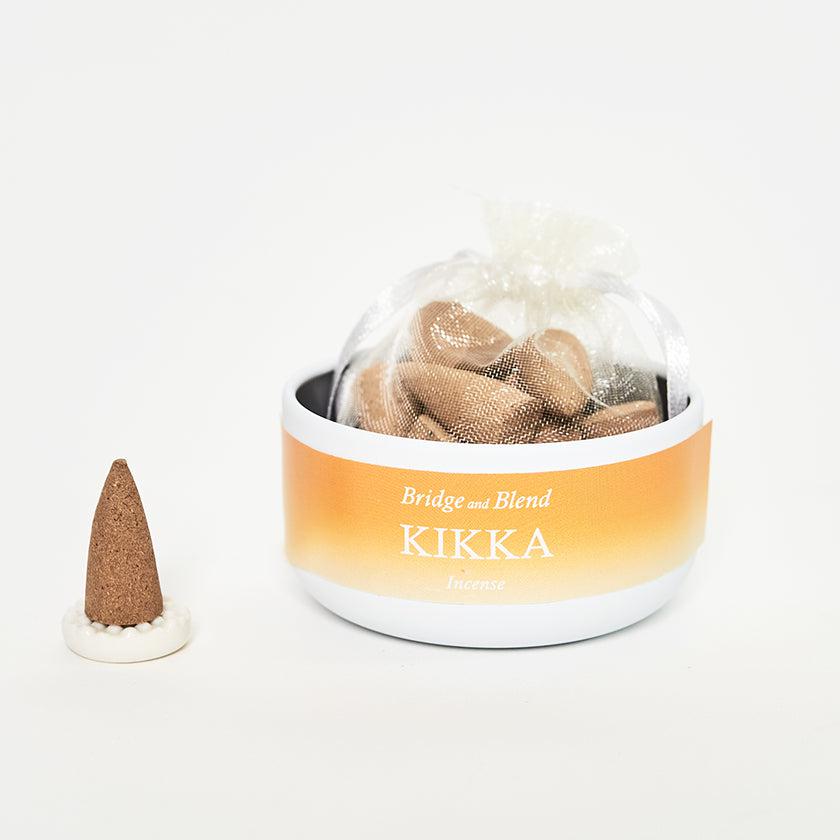 お香は、手のひらサイズの缶に入った状態で届きます。蓋を開けると、中にはコーン型のお香が20個と香立てが。香皿としても使える蓋の上に付属の香立てを置き、コーン型のお香をセットすれば準備OK。あとはライターなどで火を付け、火種が安定するまで10~15秒ほど優しく息を吹きかけるだけです。ほかに特別な道具を用意する必要がなく、使い方も簡単なのでふだんお香を使わない方でも安心して使うことができますね。