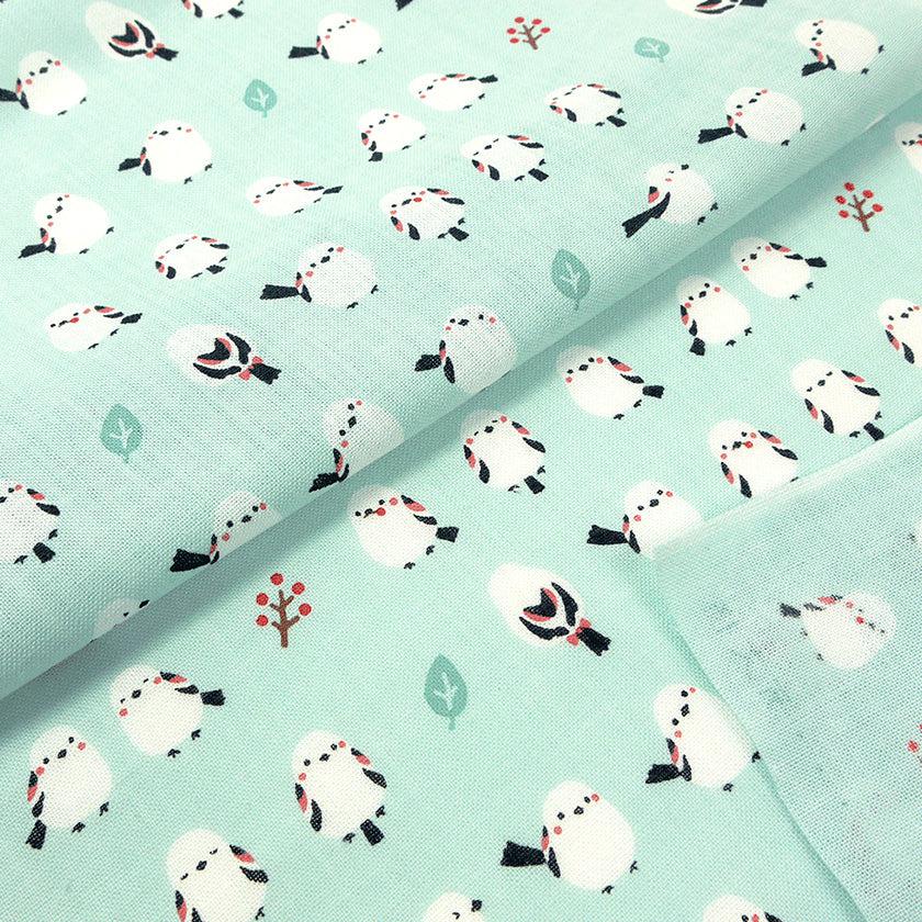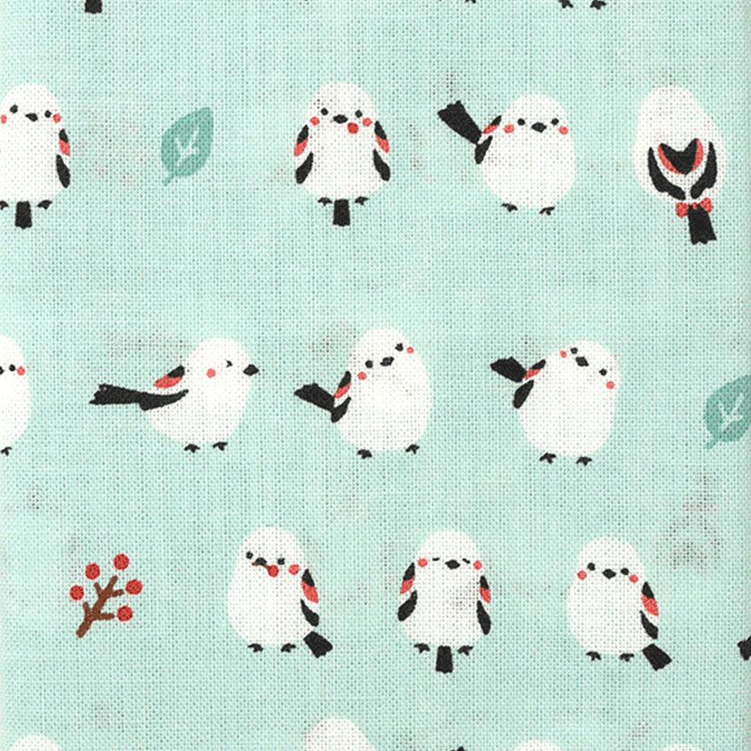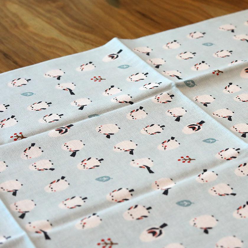 北海道に生息する野鳥のシマエナガを型染めした横浜捺染のユニークなてぬぐいです。