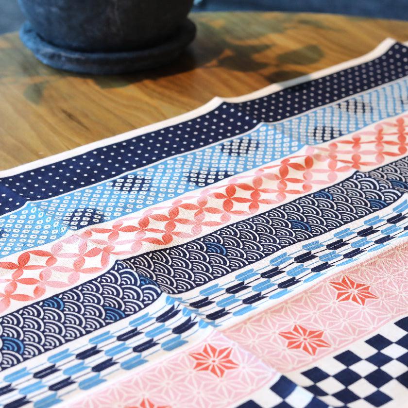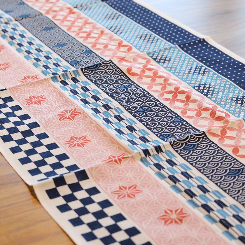 肌触りや素材感にこだわり、厳選した木綿生地のみを使用。サイズは長さ90cm×幅34cmで一般的な手ぬぐいのサイズと同様です。てぬぐいの魅力は、使い方にルールがないこと。拭う、洗う、包む、飾る、、、などアイデア次第でさまざまな使い方ができます。