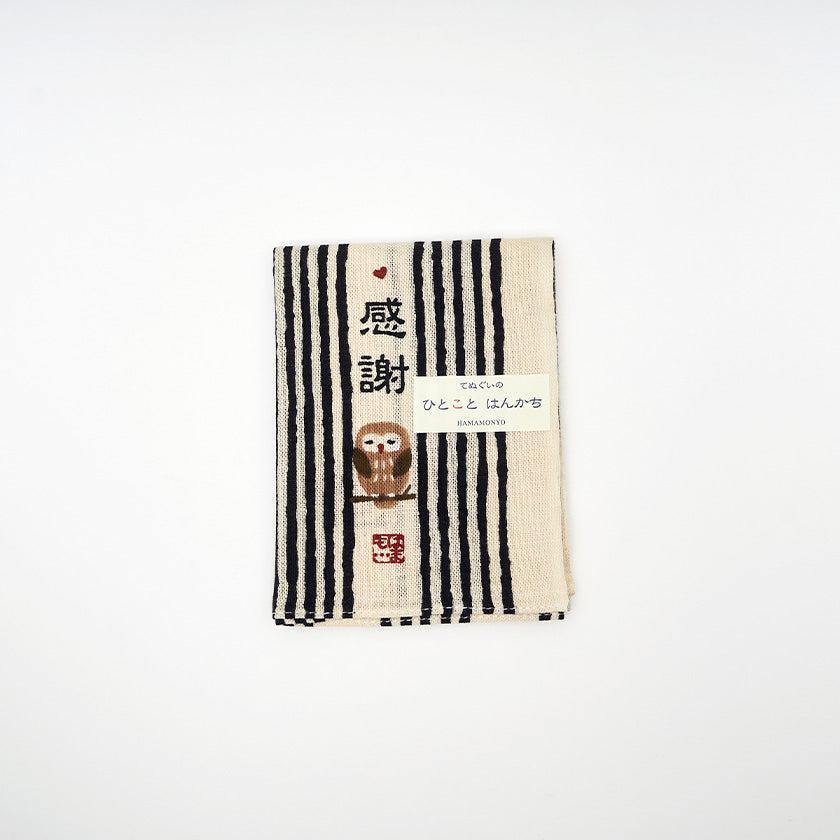 言葉で伝えたい感謝の気持ちを添えて、キュートなデザインにした横浜捺染のハンカチです。
