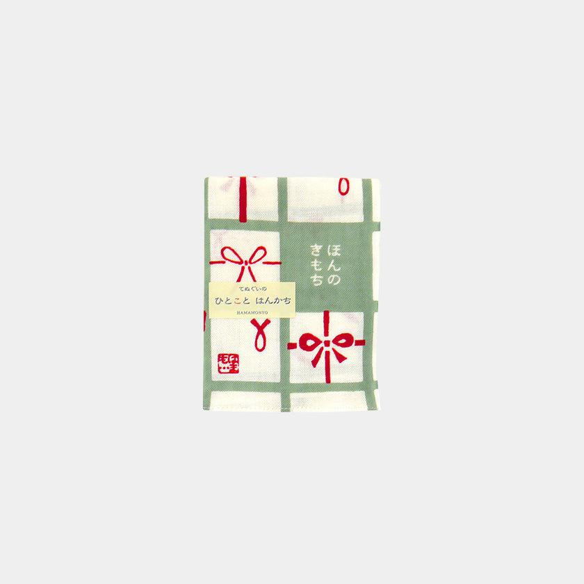 ひとことハンカチシリーズは、「感謝」「ありがとう」「ほんのきもち」「お世話になりました」「ありがとうございました」の5種の言葉からシーンにあわせて選ぶことができます。