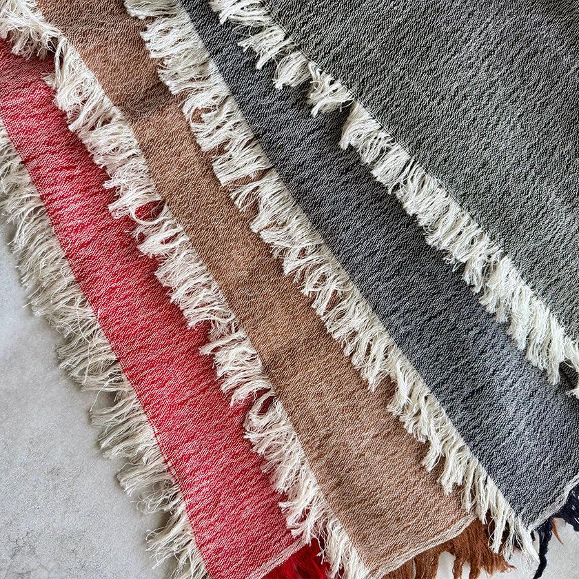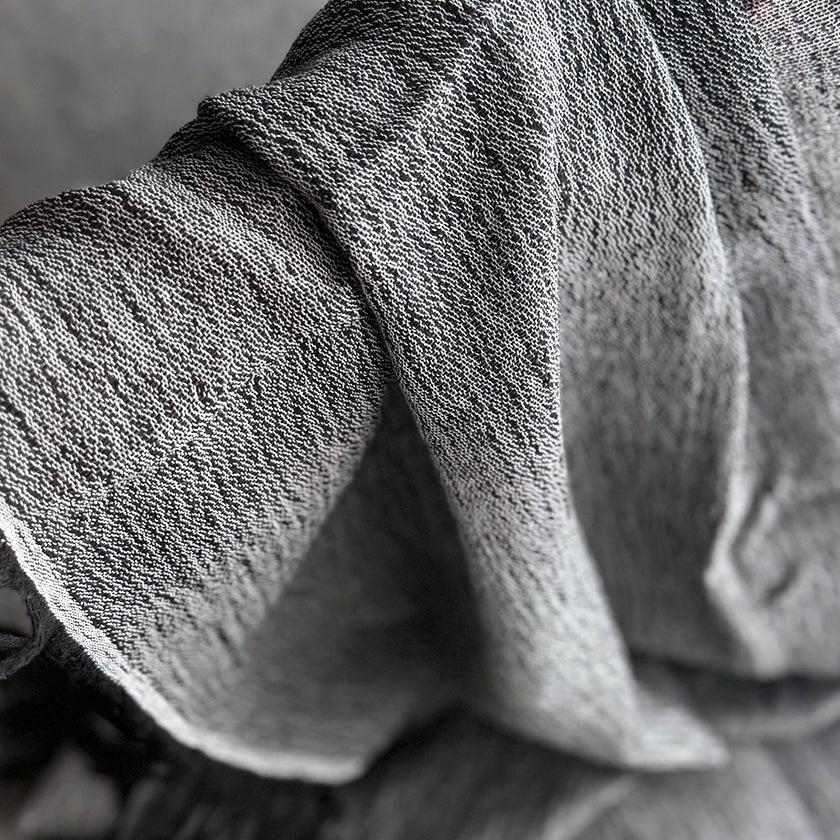 空気をたっぷりと含んだ、肌触りの柔らかな播州織のストール。低速の織機でゆっくりと織りあげた逸品です。縮絨加工を施すことで独特の風合いがでるほか、保温効果も高まります。綿と毛の自然素材を用いているのでデリケート肌のかたにもおすすめ。2サイズ・4カラーが揃っているので、ボリュームや色を好みで選べるのがうれしいですね。